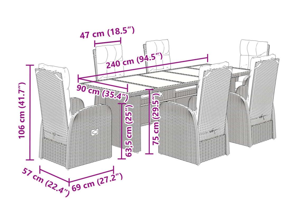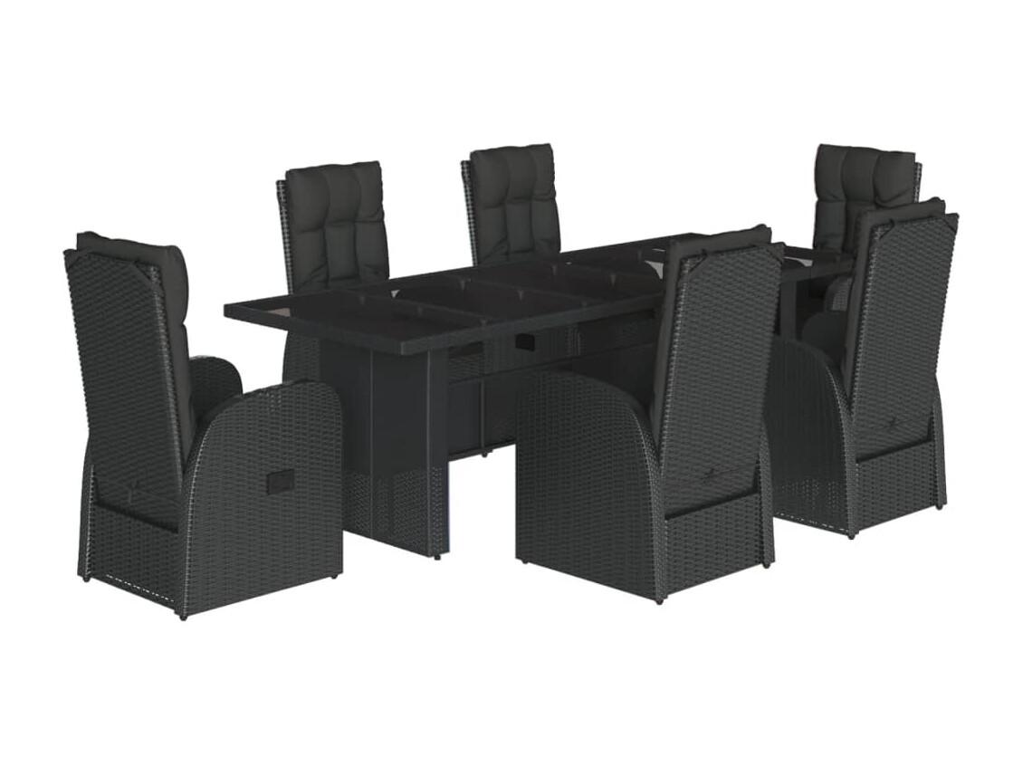 Set de comedor de jardín 7 piezas y cojines ratán sintético negro