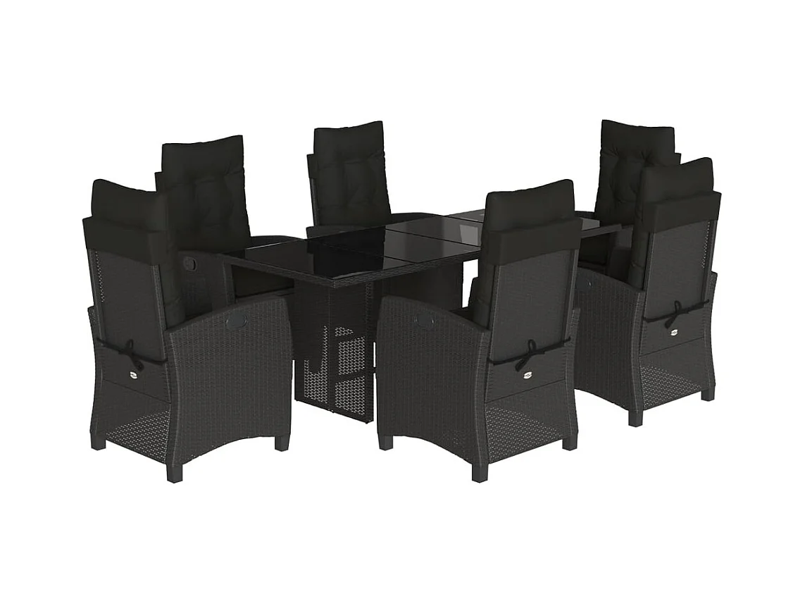 Set de comedor de jardín 7 pzas y cojines ratán sintético negro