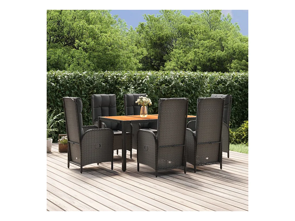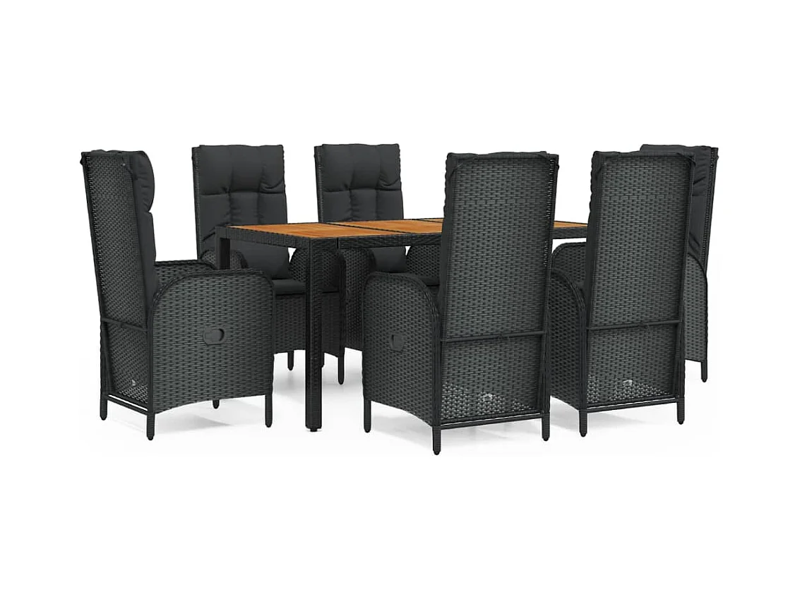 Set de comedor de jardín 7 pzas y cojines ratán sintético negro