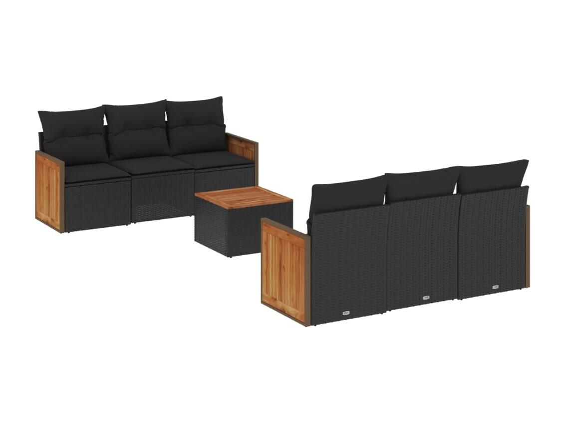 Set de sofás de jardín 6 piezas y cojines ratán sintético negro