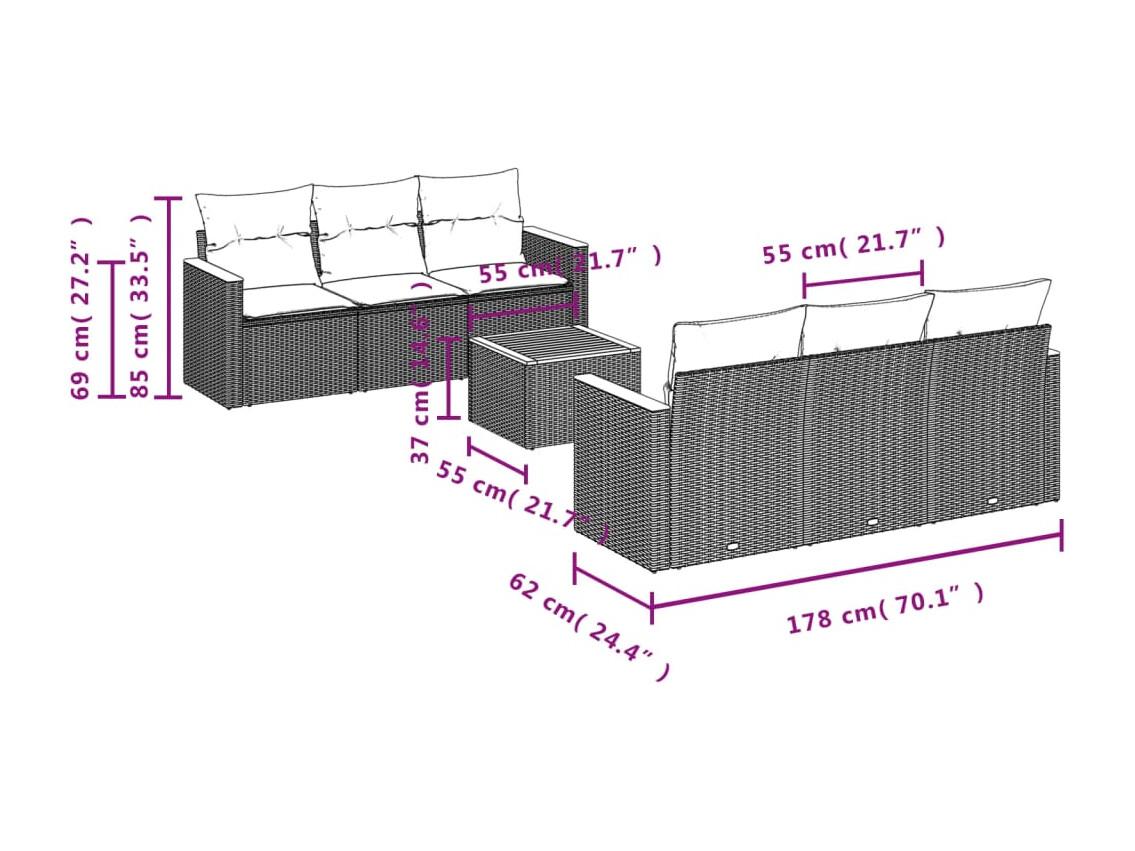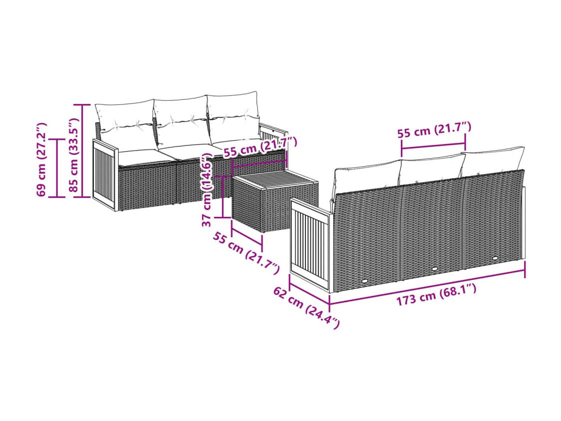 Conjunto de jardín - sofá 2+1+1 plazas