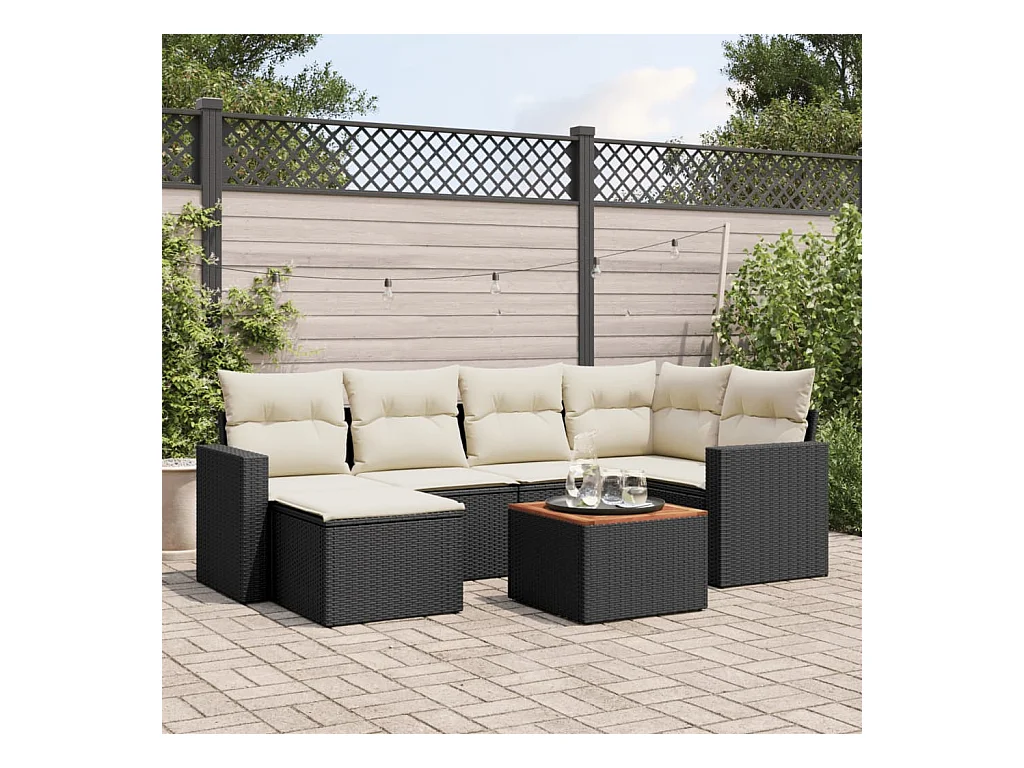 Set de comedor de jardín 7 pzas y cojines ratán sintético negro