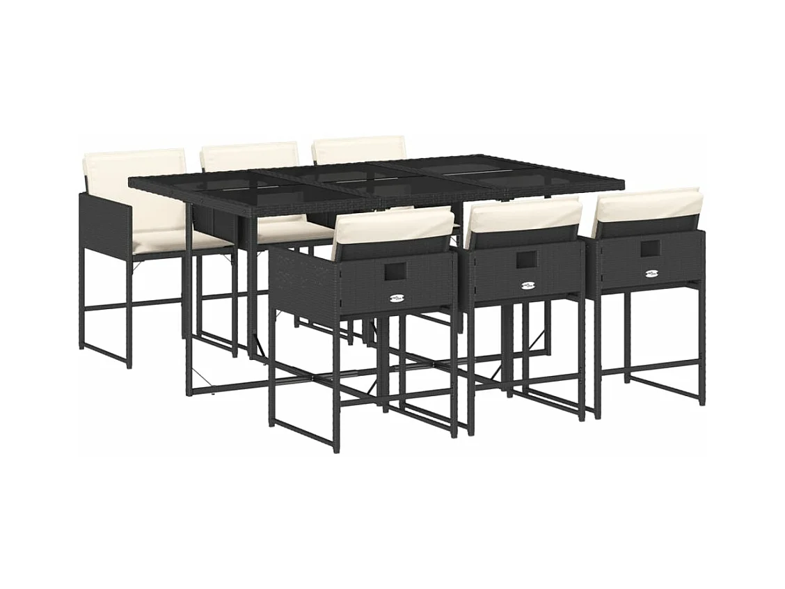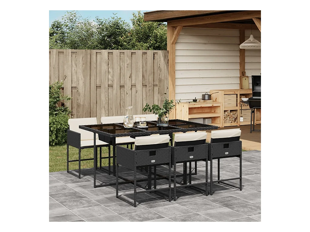 Set de comedor de jardín 7 pzas y cojines ratán sintético negro ES753588