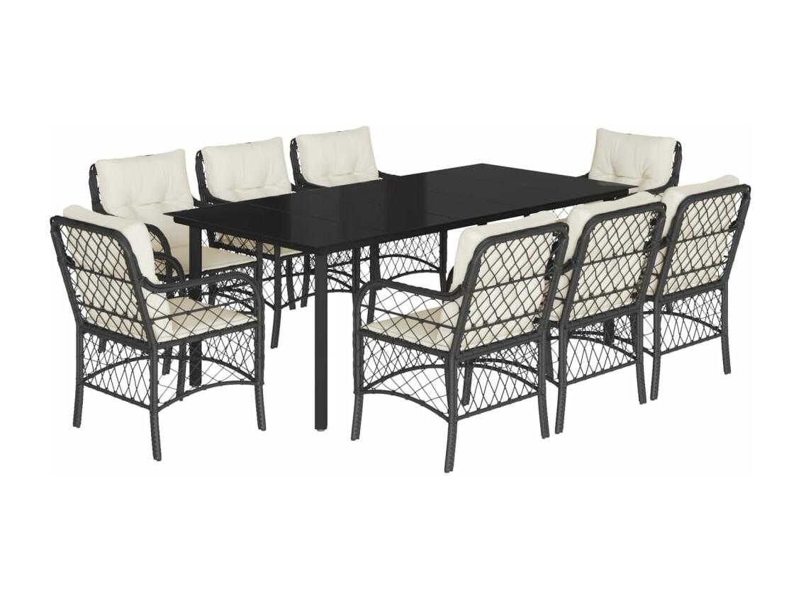 Set de comedor de jardín 9 piezas y cojines ratán sintético negro