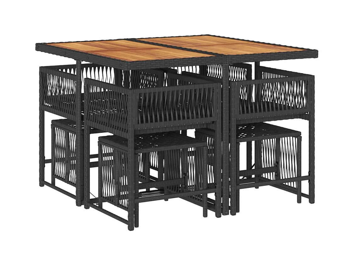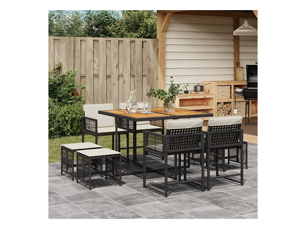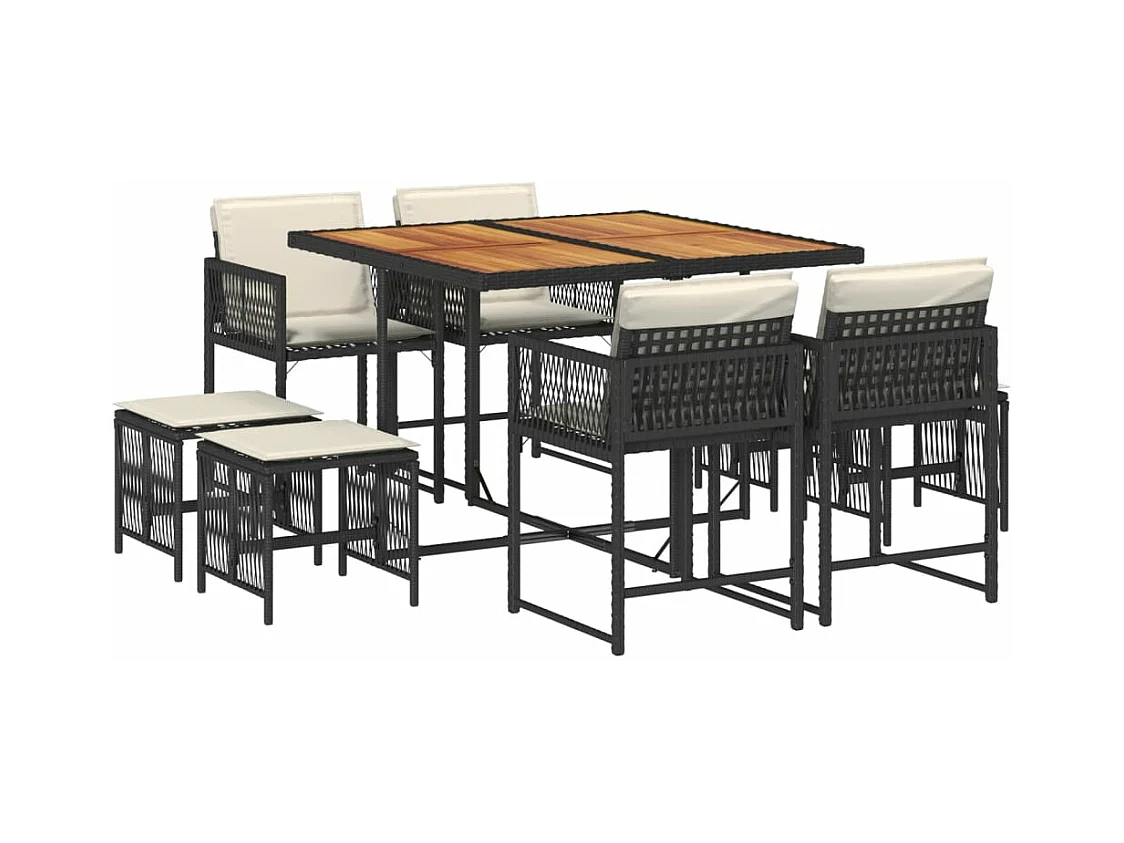 Set de comedor de jardín 9 pzas y cojines ratán sintético negro