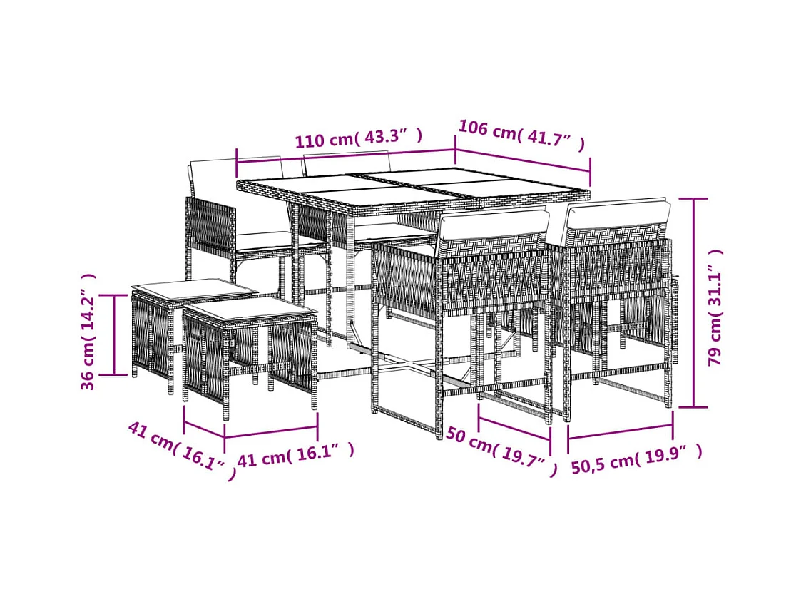 Conjunto de mesa y sillas para jardín rectangular