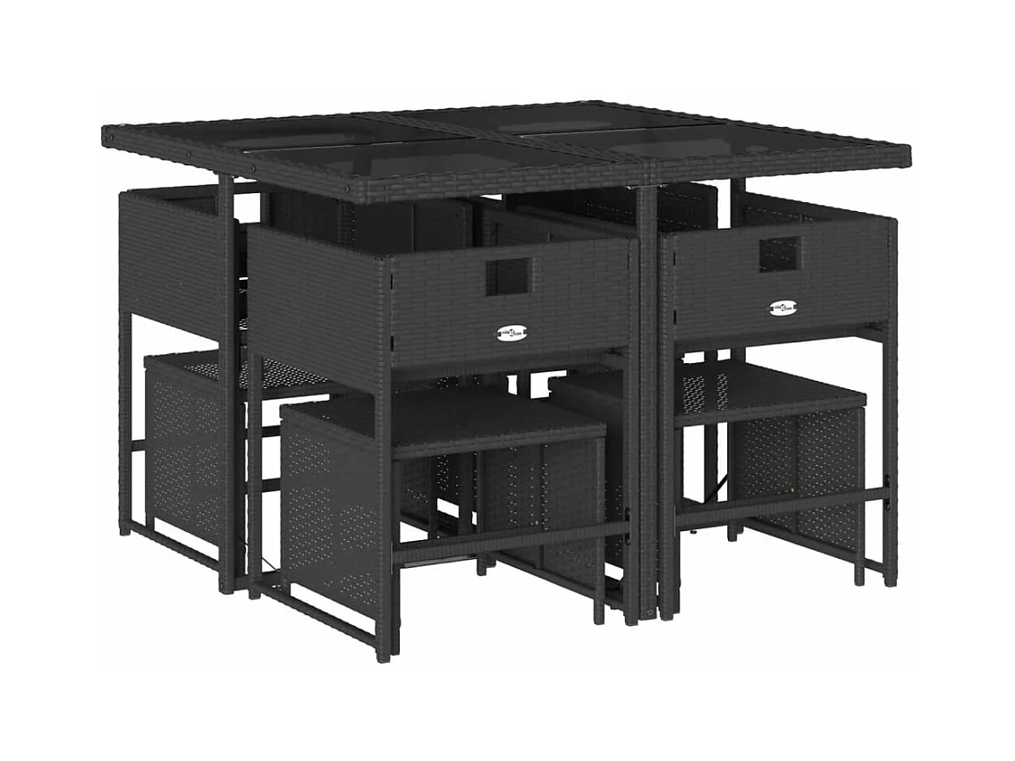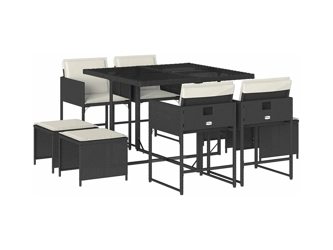 Set de comedor de jardín 9 pzas y cojines ratán sintético negro
