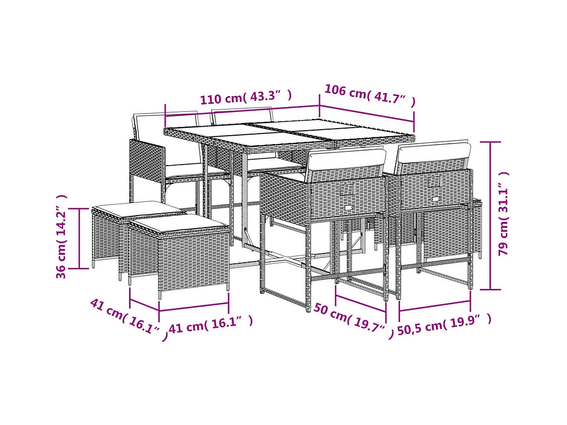 Conjunto de mesa y sillas para jardín rectangular
