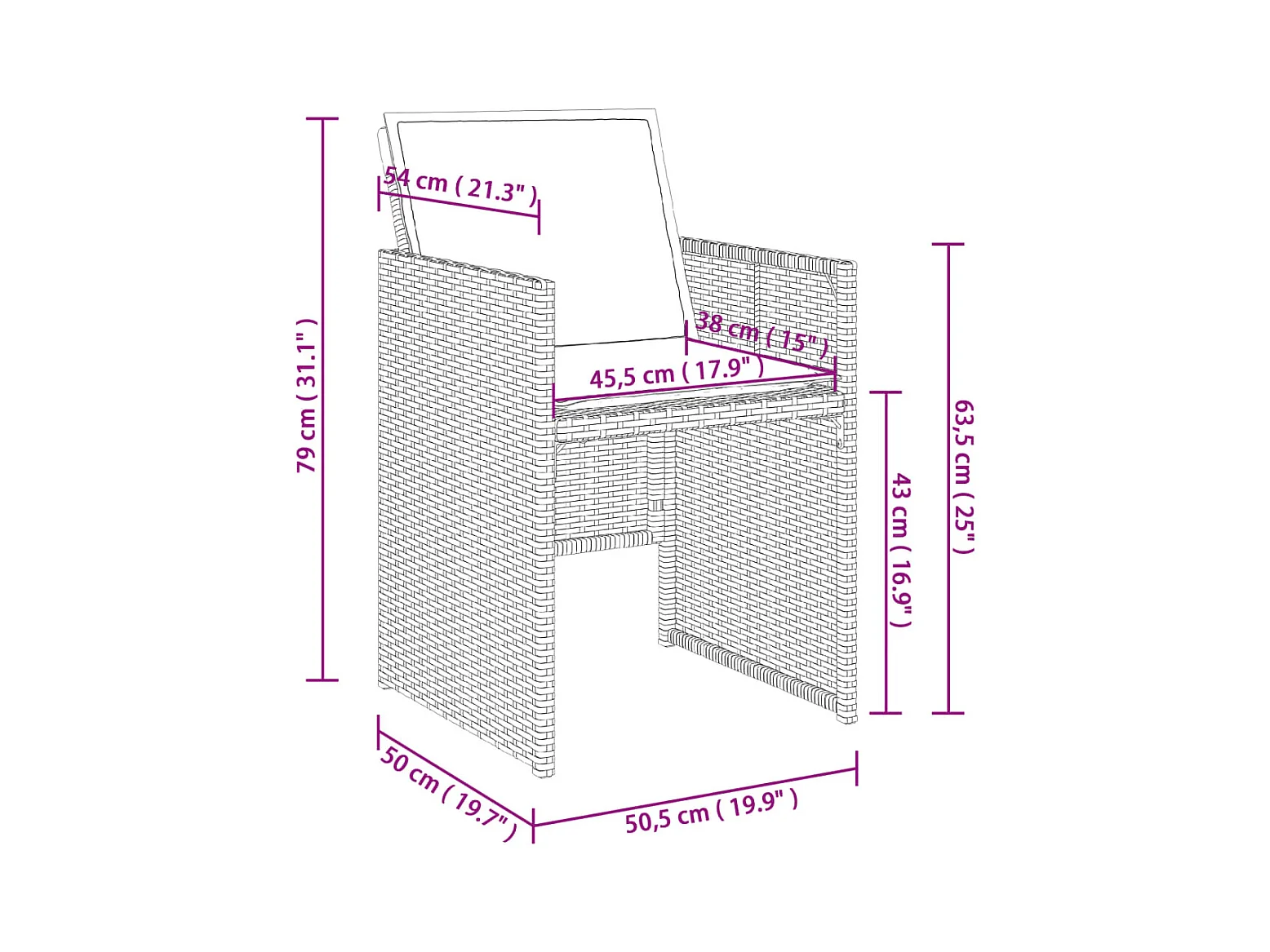 Conjunto de mesa y sillas para jardín rectangular