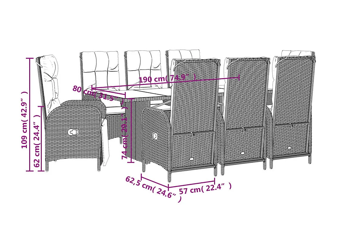 Set de comedor de jardín 7 pzas y cojines ratán sintético negro