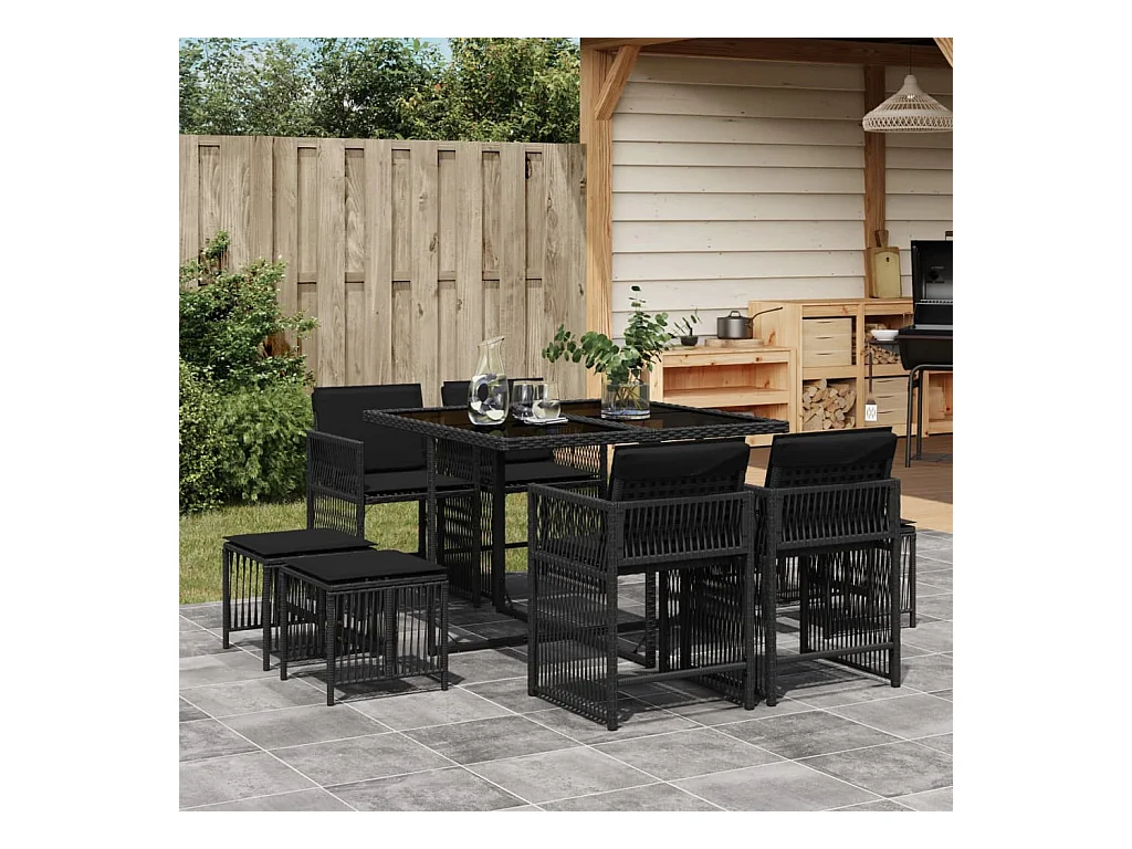 Set de comedor de jardín 9 pzas y cojines ratán sintético negro ES393081