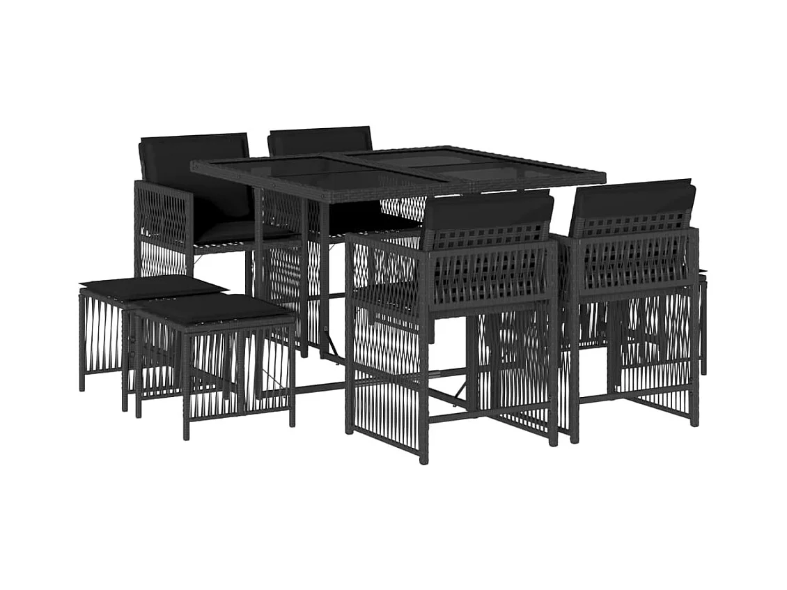 Set de comedor de jardín 9 pzas y cojines ratán sintético negro ES988725