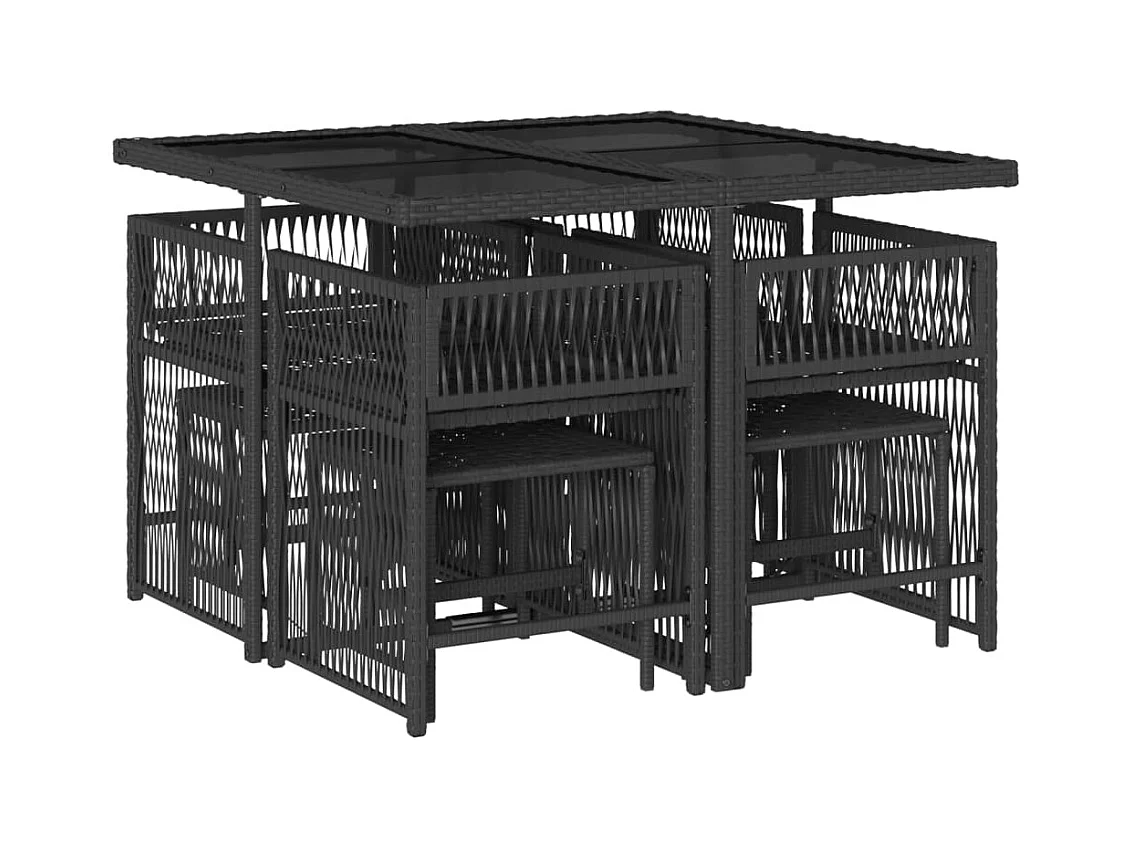 Set de comedor de jardín 9 pzas y cojines ratán sintético negro ES190949