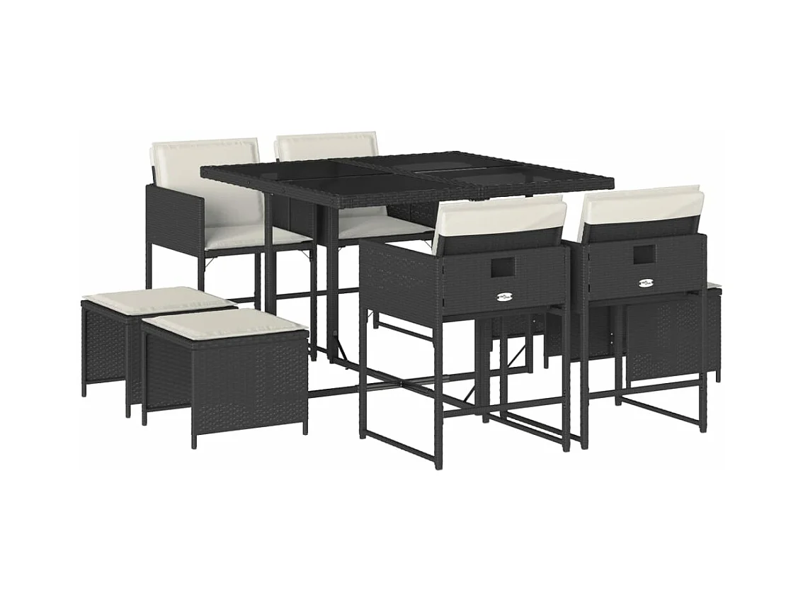 Set de comedor de jardín 9 pzas y cojines ratán sintético negro ES457661