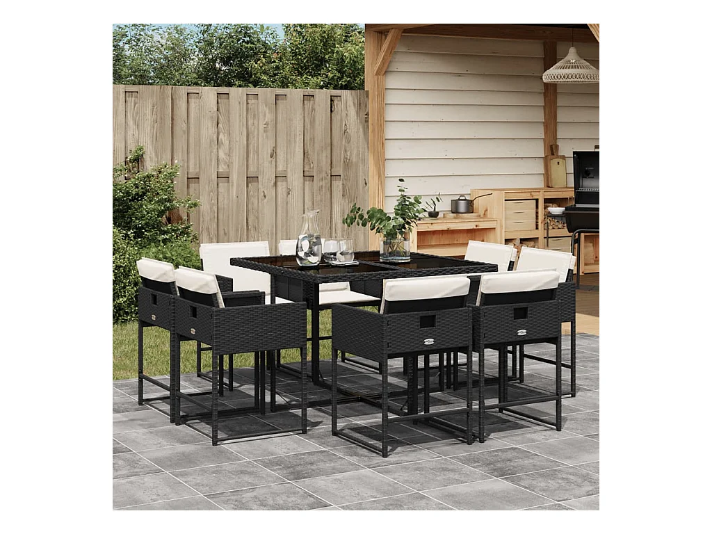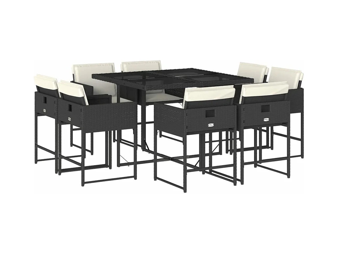 Set de comedor de jardín 9 pzas y cojines ratán sintético negro ES988725