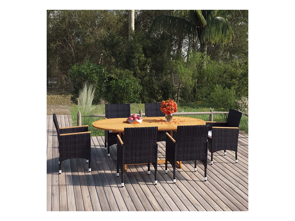 Set de comedor de jardín 7 piezas ratán PE madera acacia negro