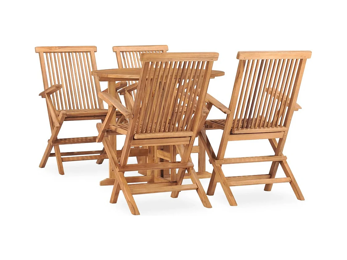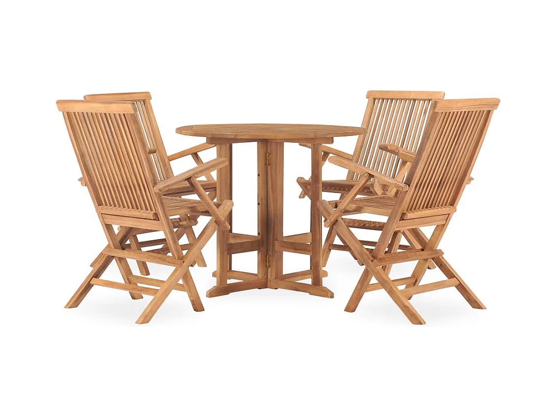 Set de comedor de jardín plegable 5 piezas madera maciza de teca