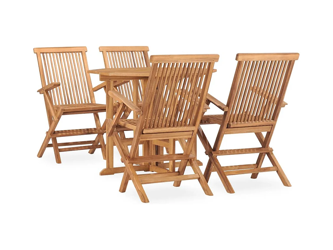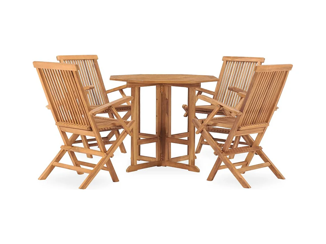 Set de comedor de jardín plegable 5 piezas madera maciza de teca