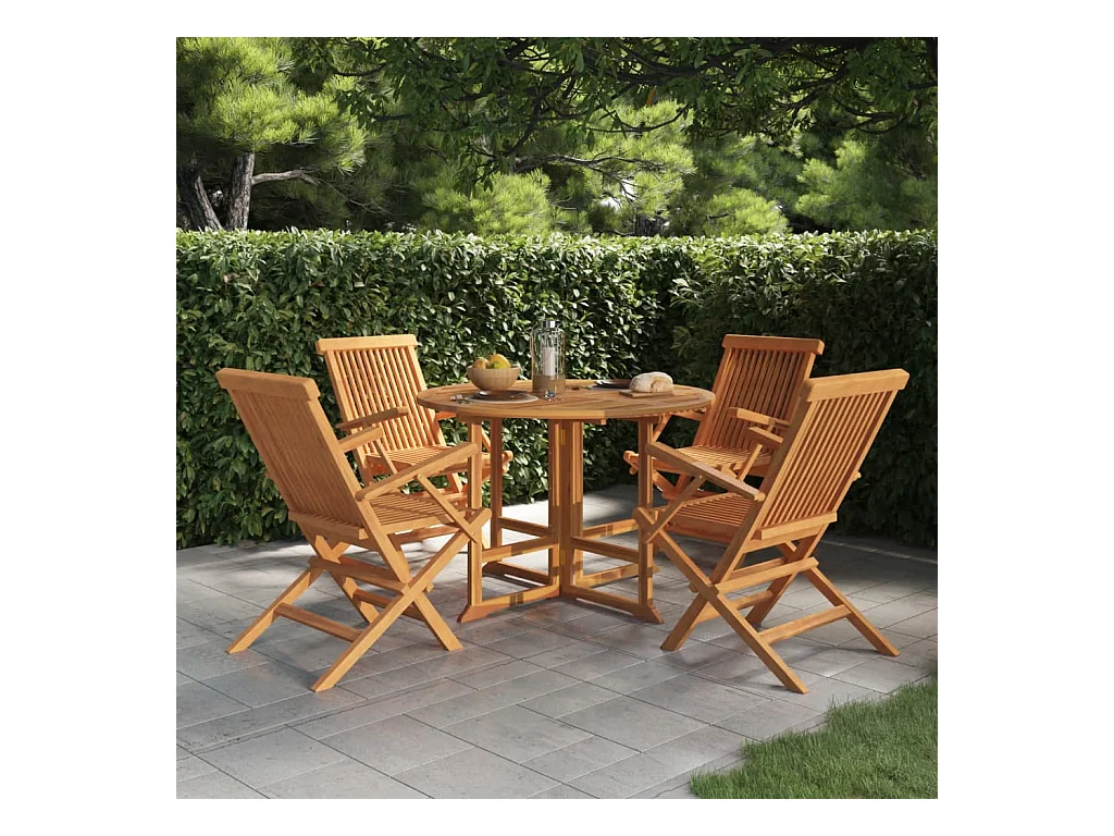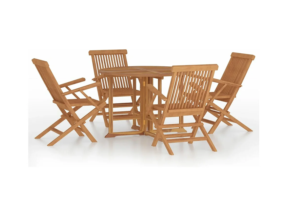 Set de comedor de jardín plegable 5 piezas madera maciza de teca