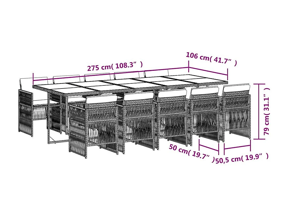 Set de comedor jardín 11 piezas con cojines ratán sintético negro