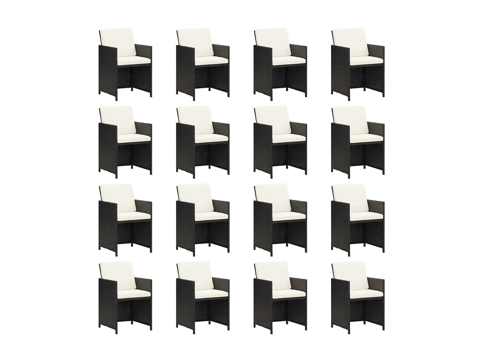 Set comedor de jardín 19 piezas con cojines ratán sintético negro