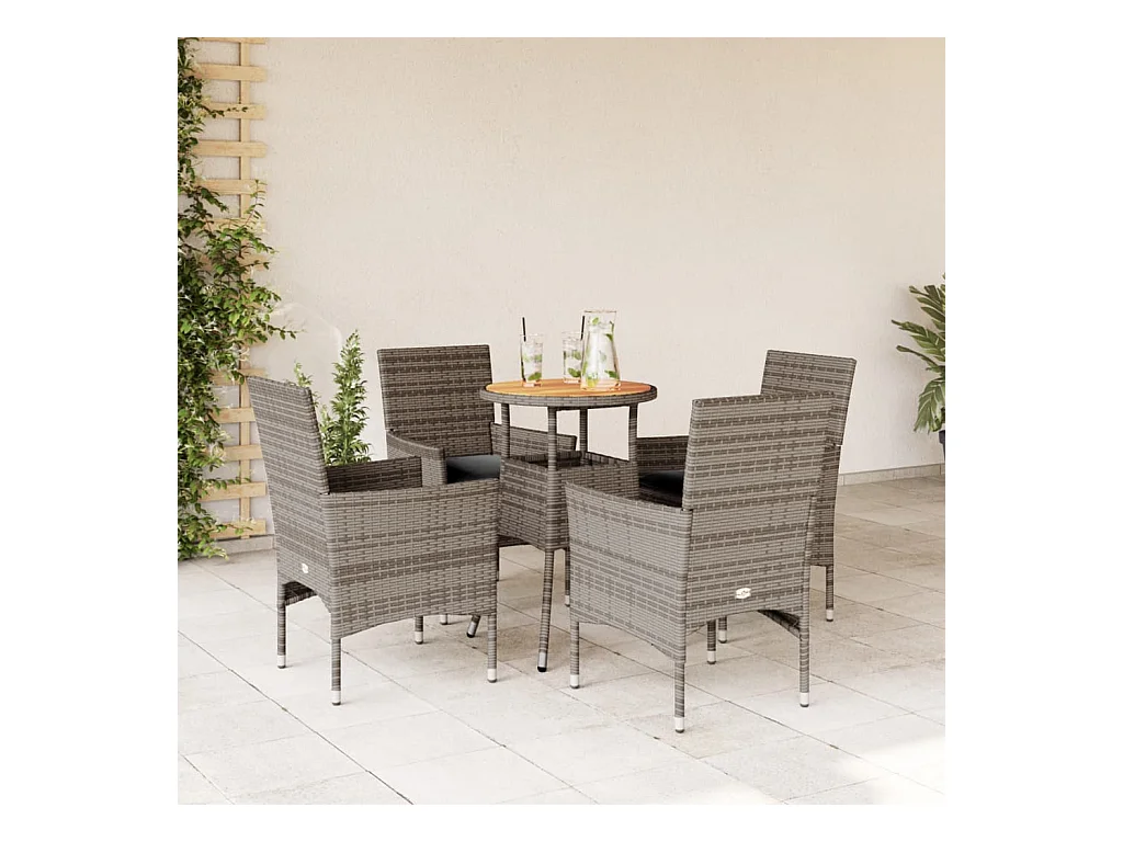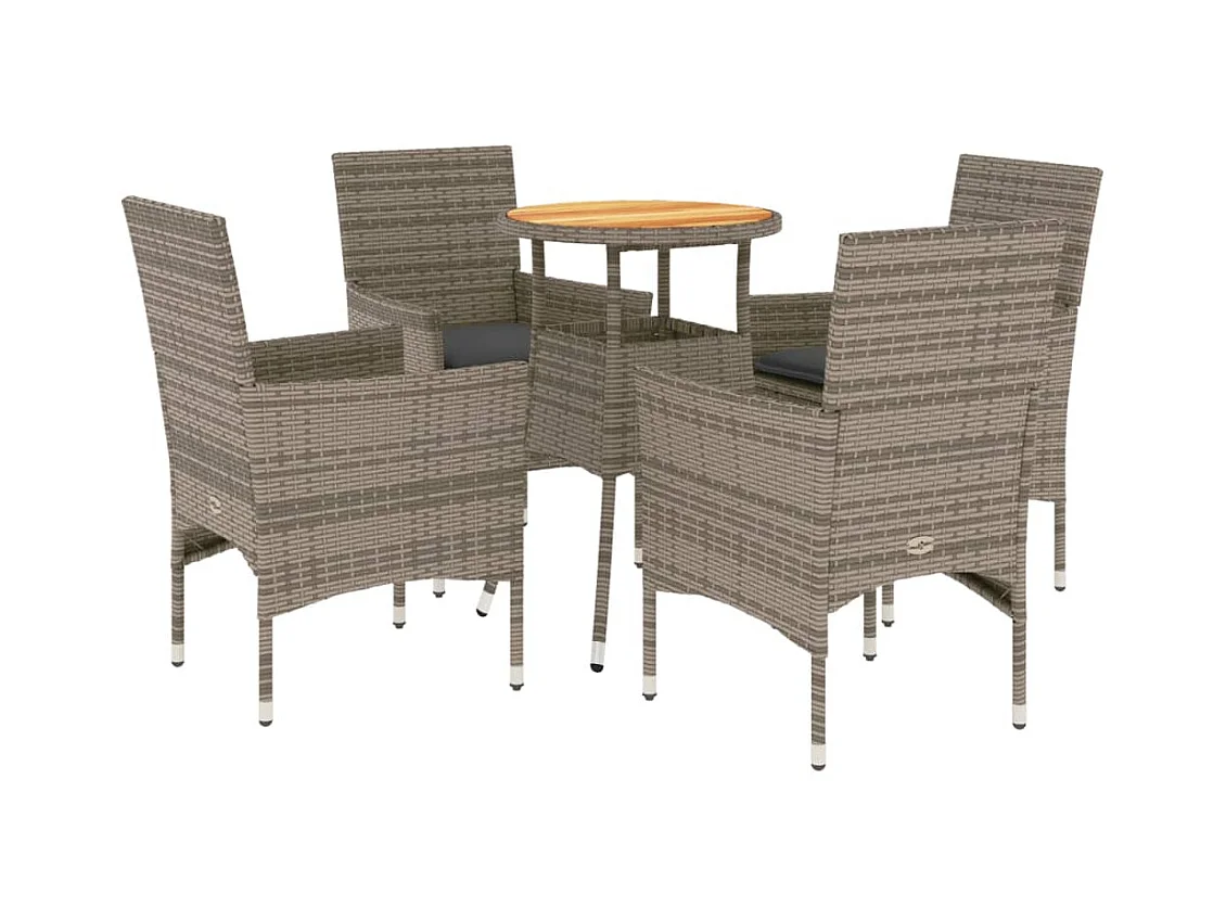 Set de comedor jardín 5 pzas con cojines ratán PE acacia gris ES957235
