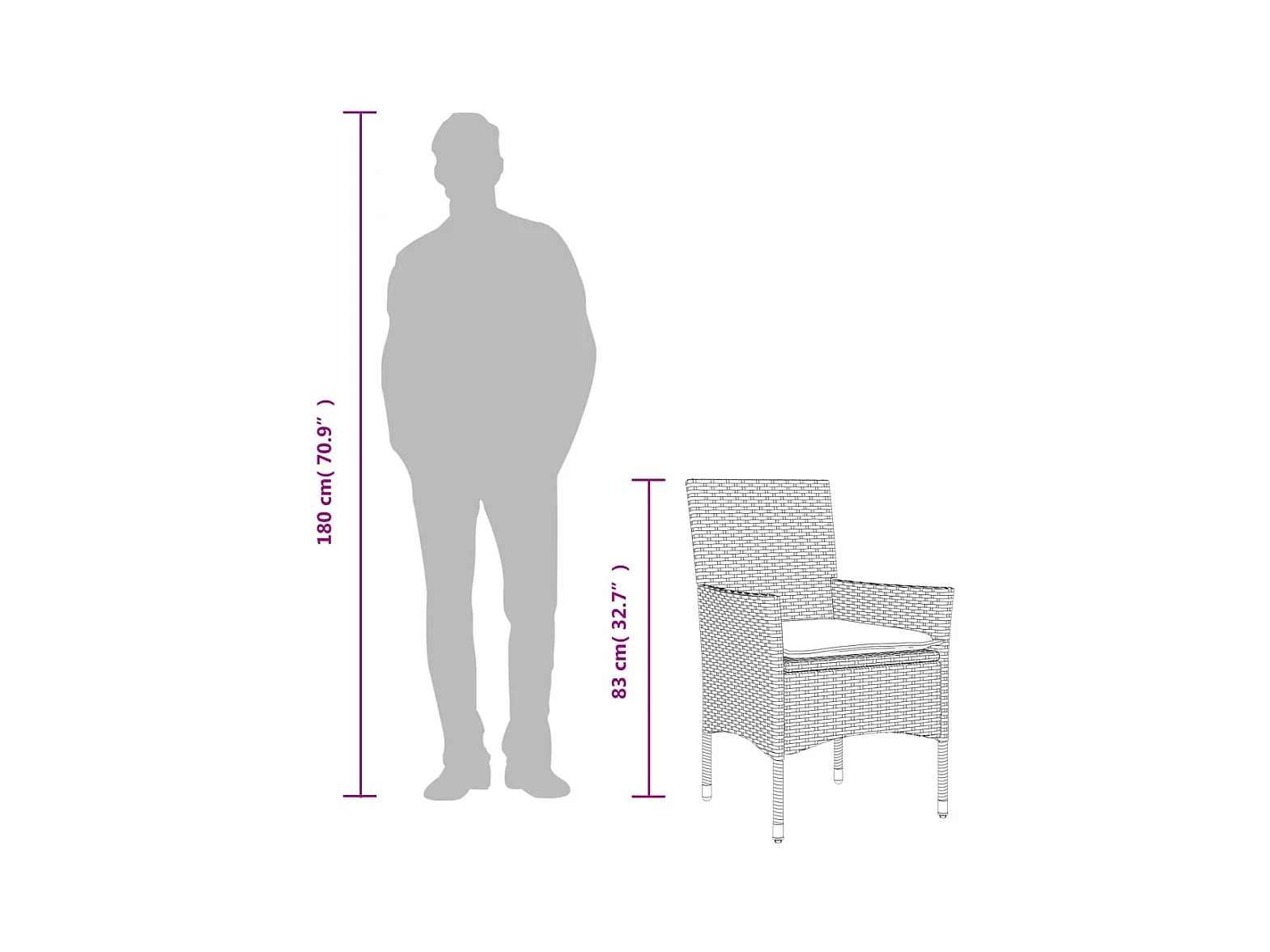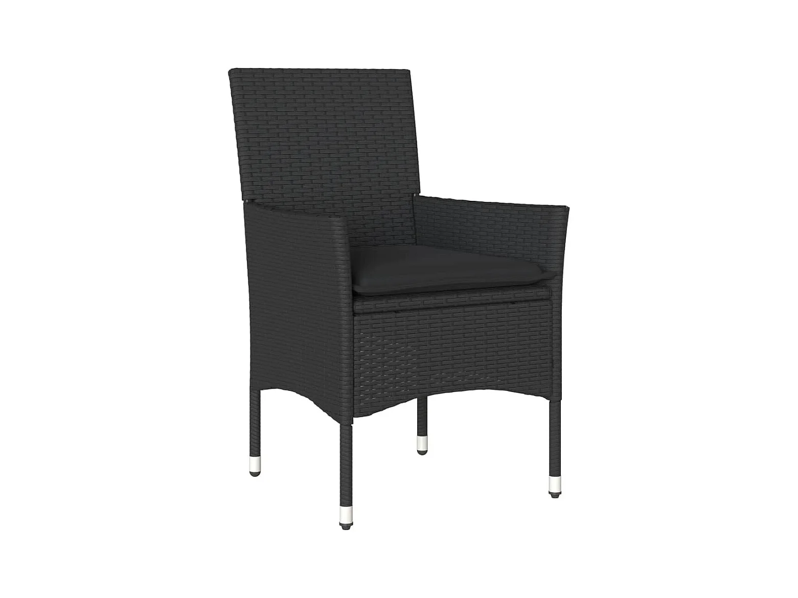 Set comedor jardín 3 pzas cojines ratán sintético vidrio negro
