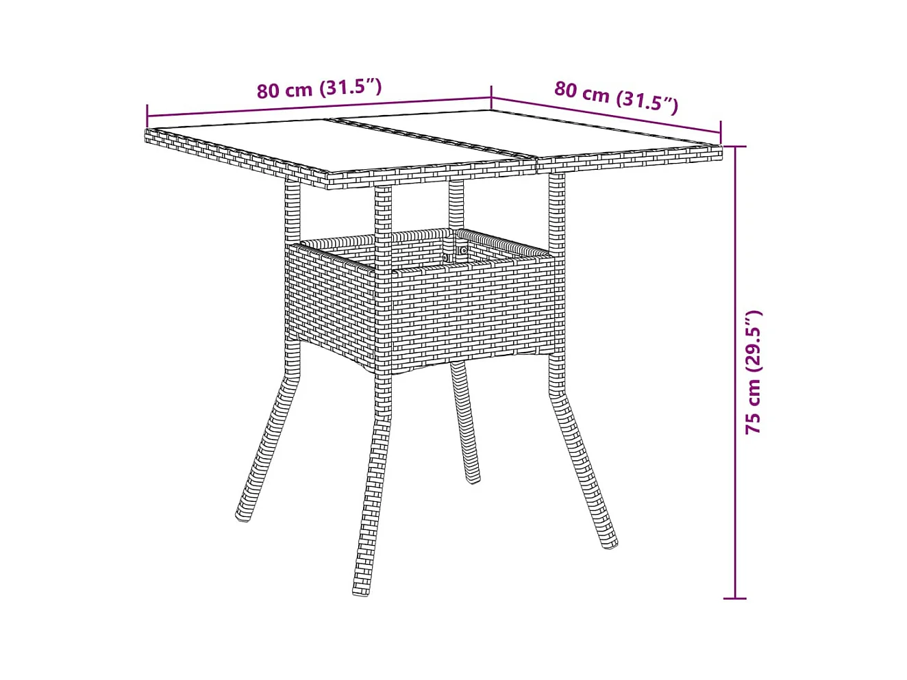 Set comedor jardín 5 pzas ratán sintético vidrio templado negro