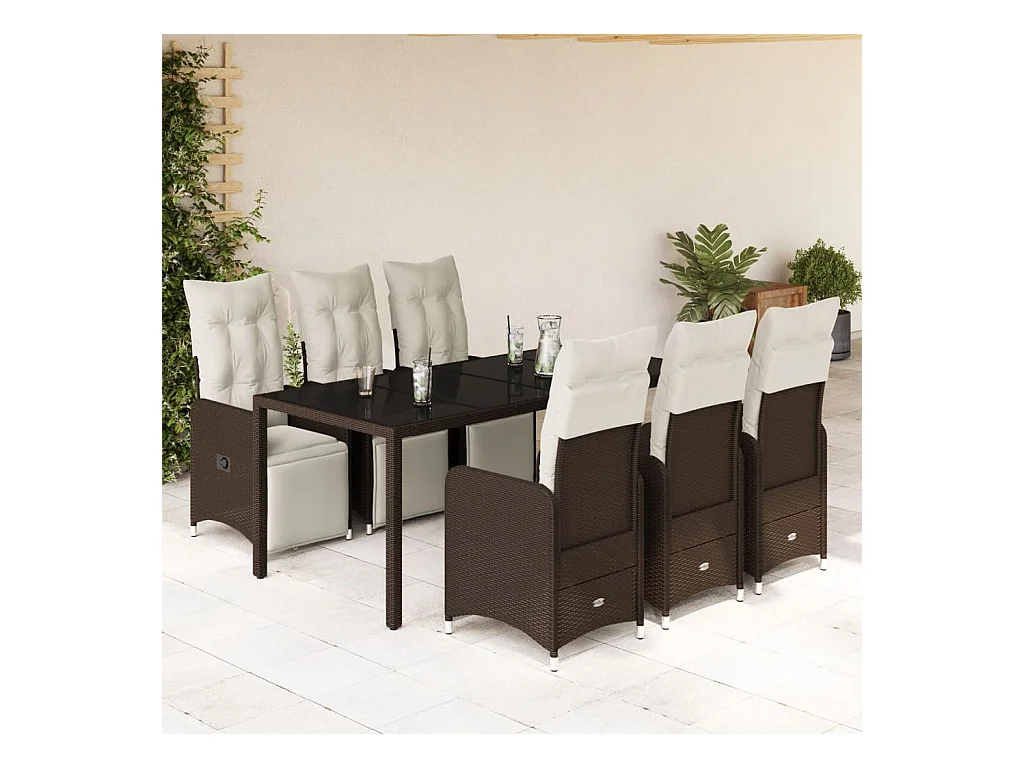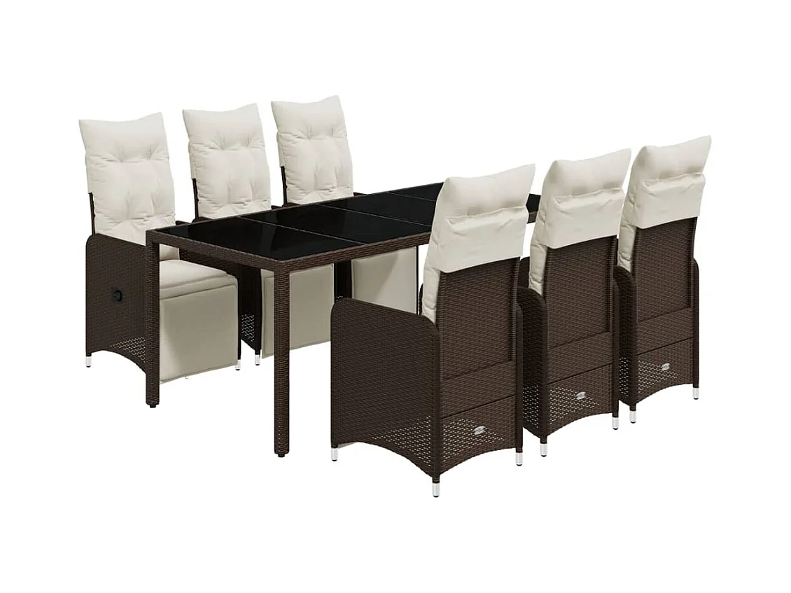 Set de mesa y sillas jardín 7 pzas con cojines ratán PE marrón