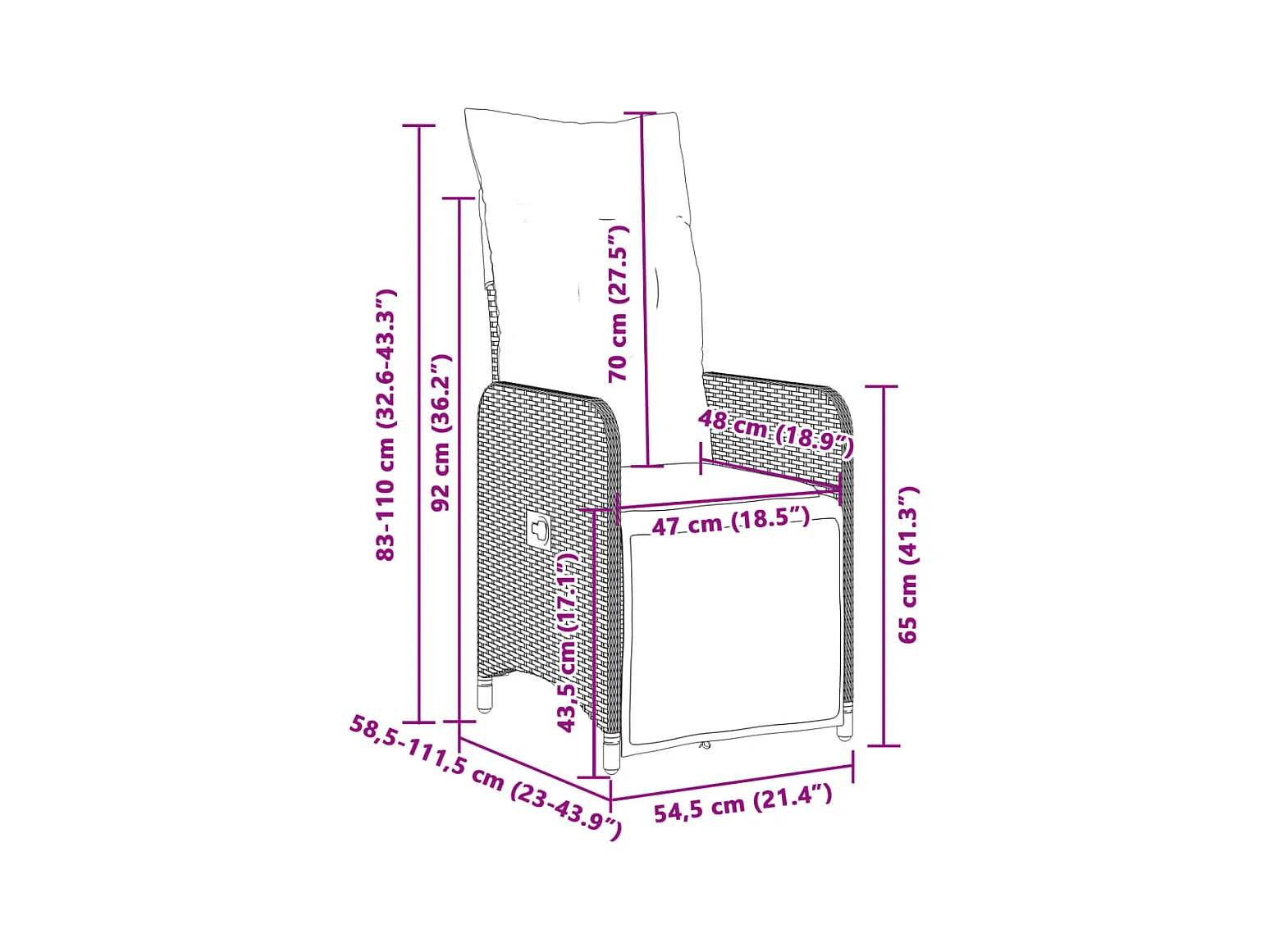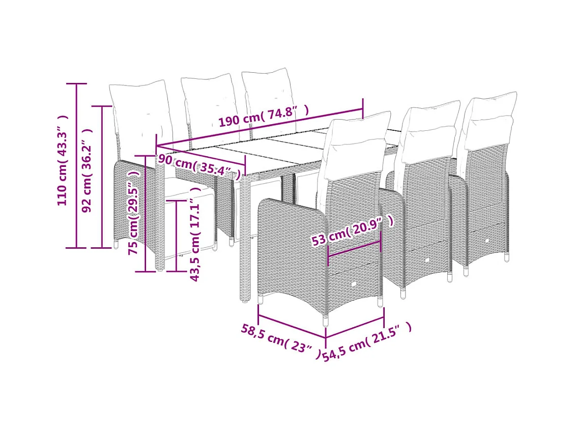 Set de mesa y sillas jardín 9 piezas y cojines ratán PE marrón