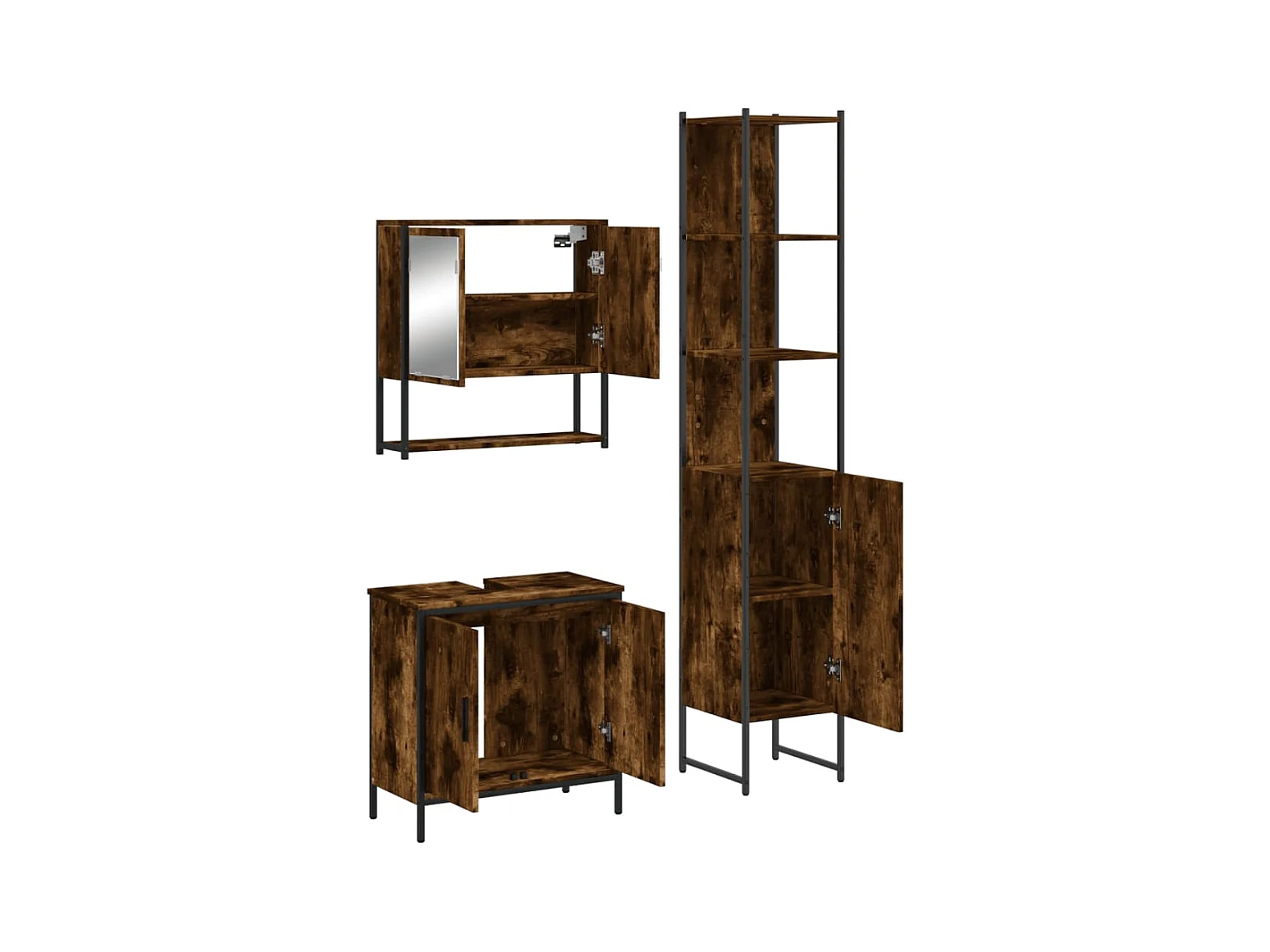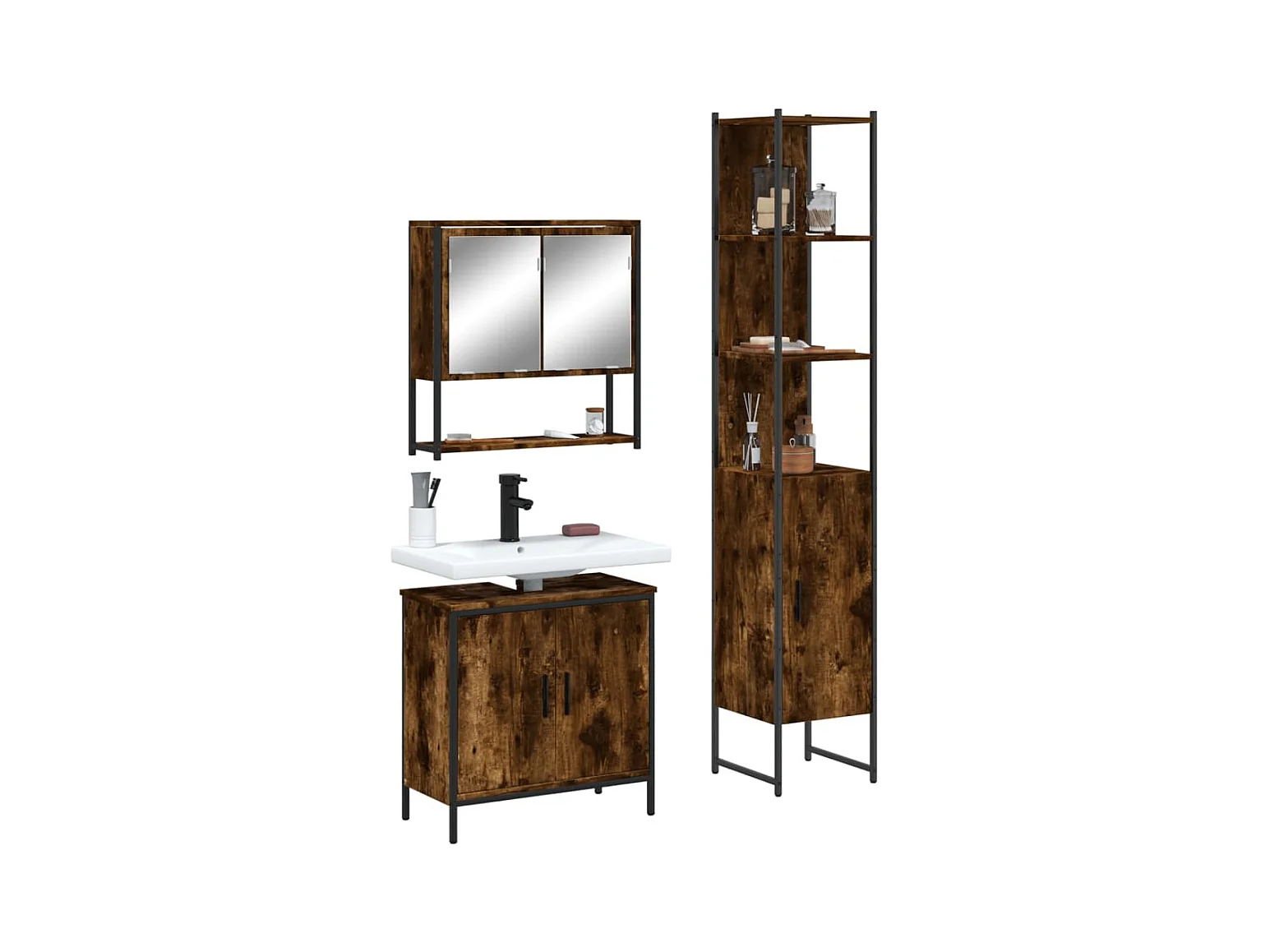 Set de muebles baño 3 pzas madera contrachapada roble ahumado