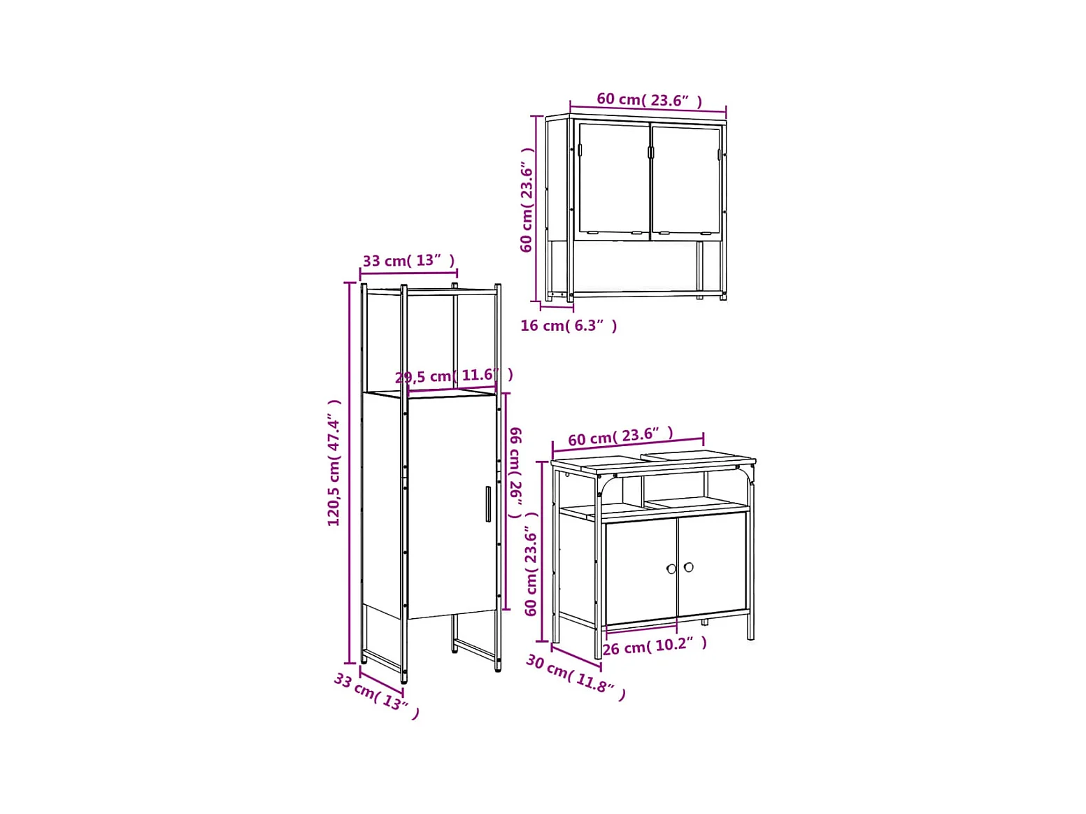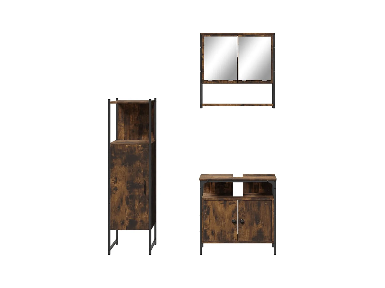 Set de muebles baño 3 pzas madera contrachapada roble ahumado
