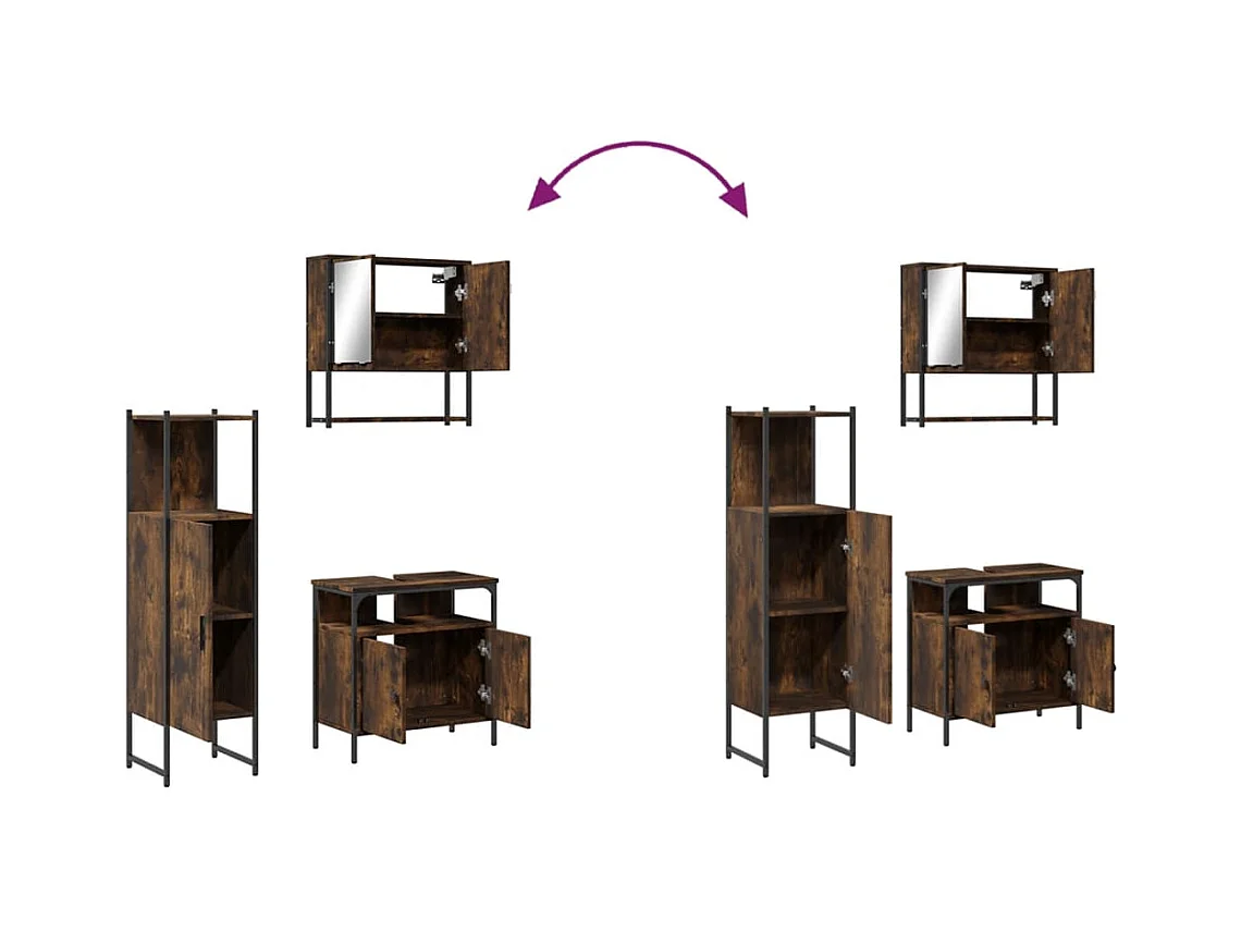 Set de muebles baño 4 pzas madera contrachapada roble ahumado