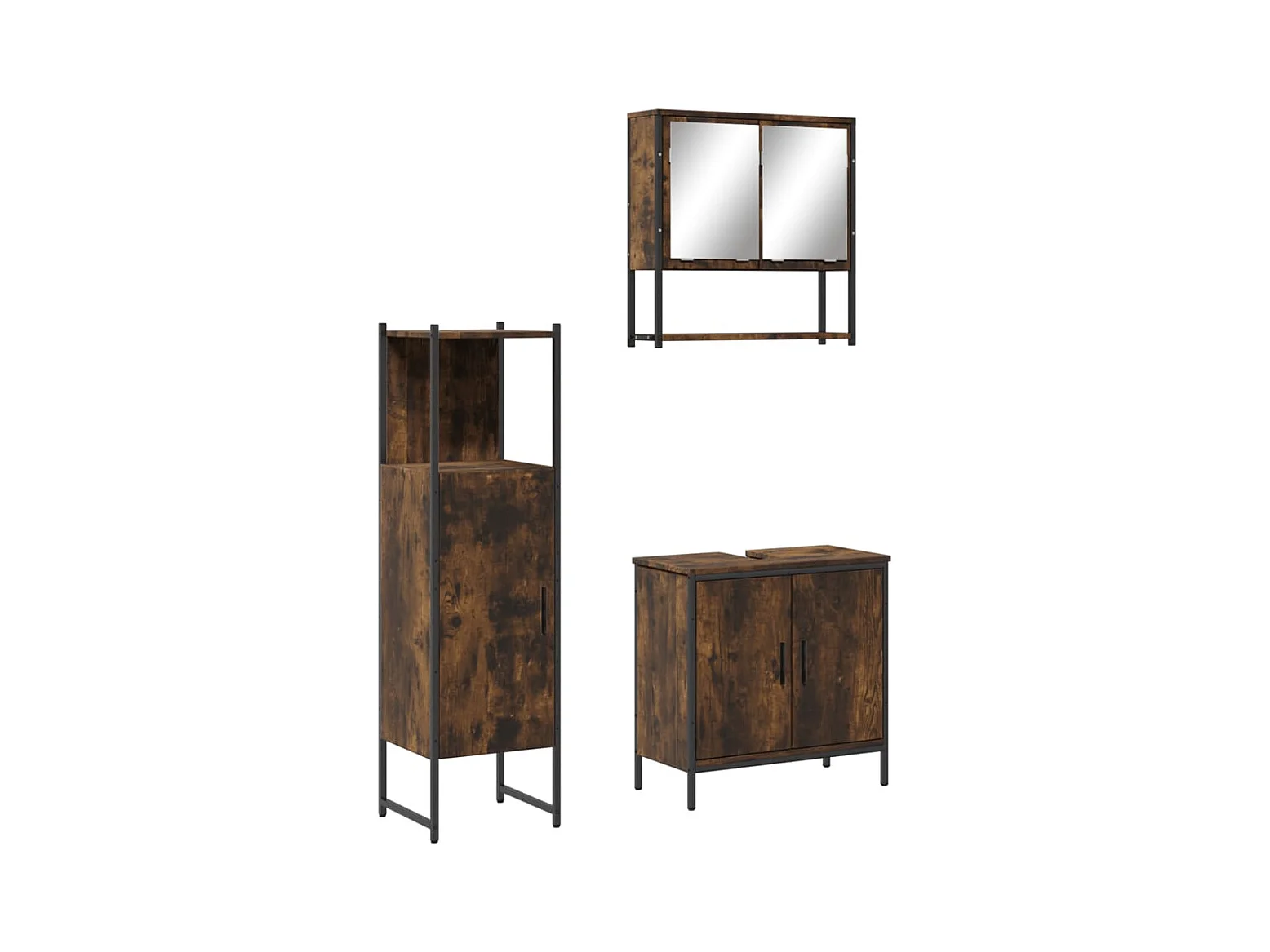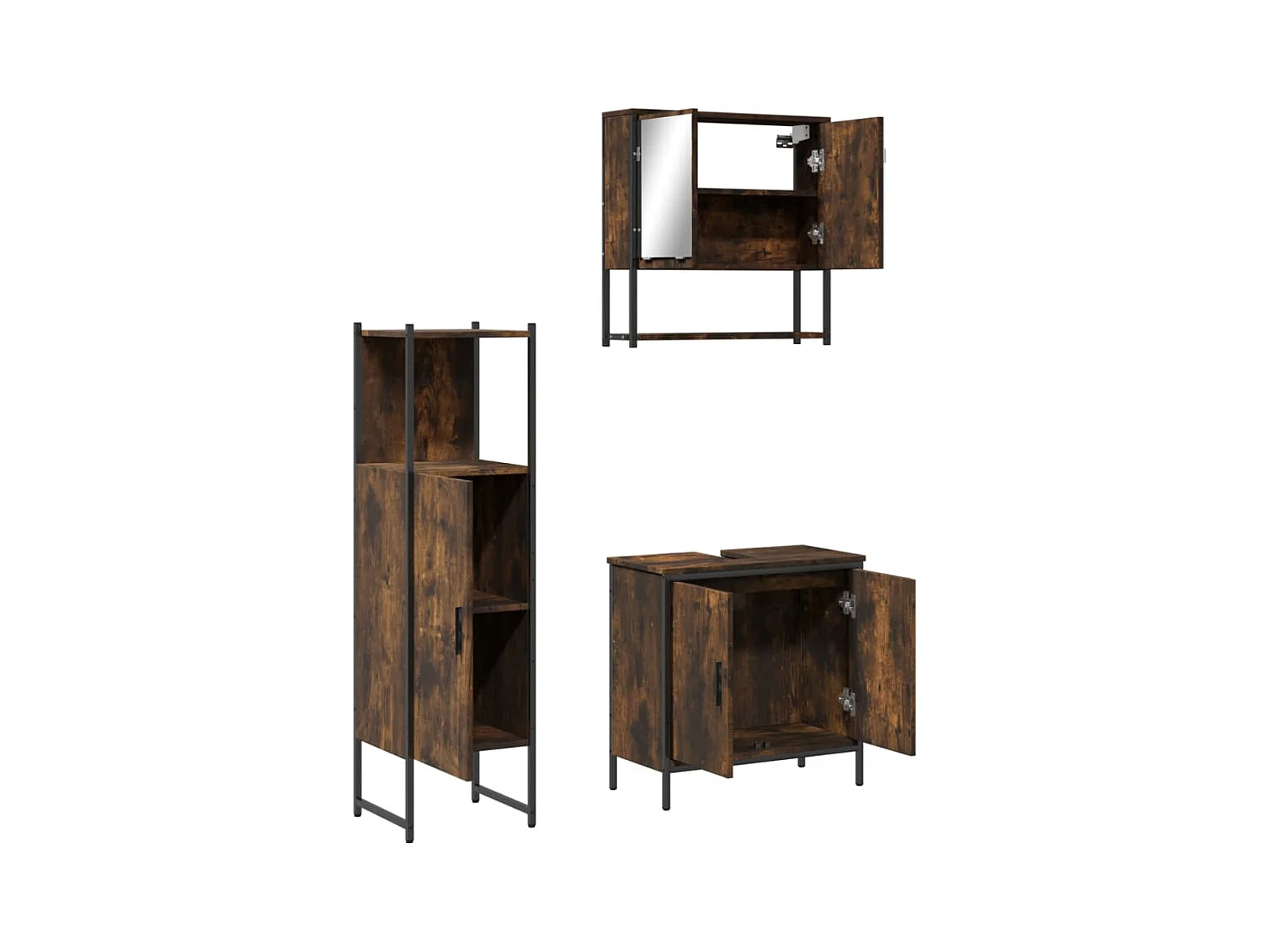 Set de muebles baño 3 pzas madera contrachapada roble ahumado