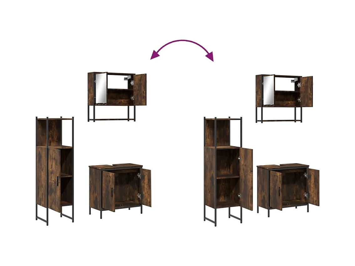 Set de muebles baño 4 pzas madera contrachapada roble ahumado
