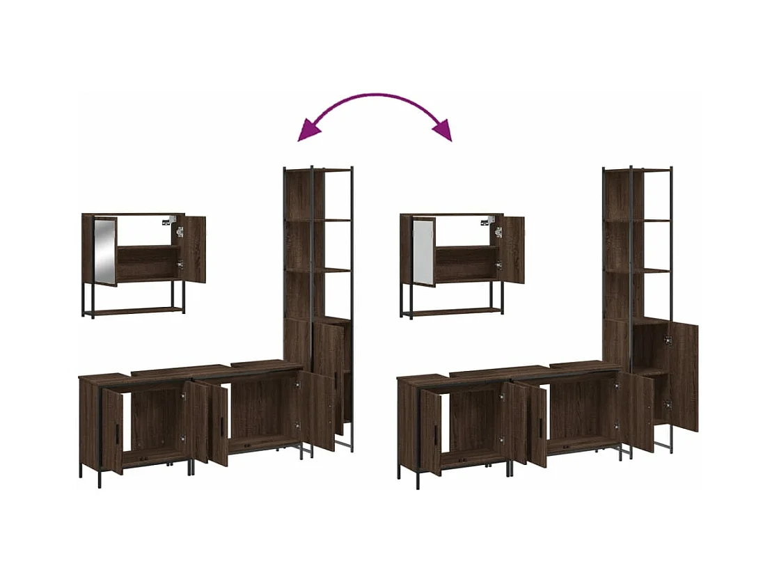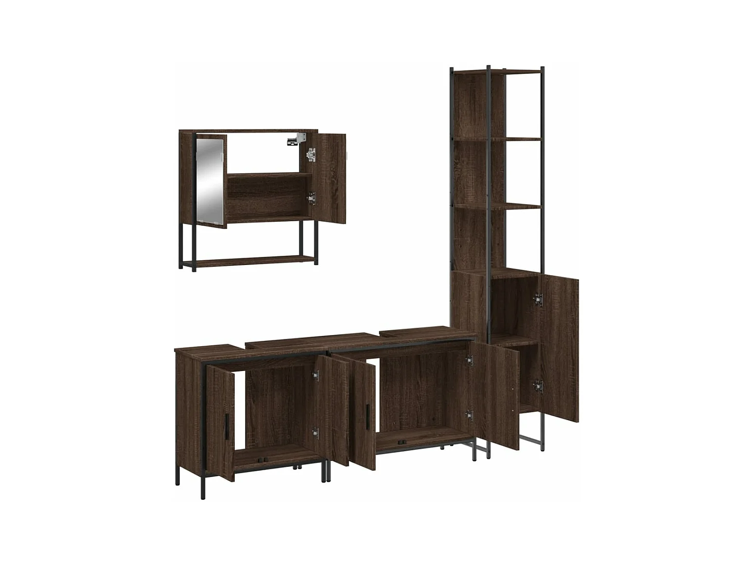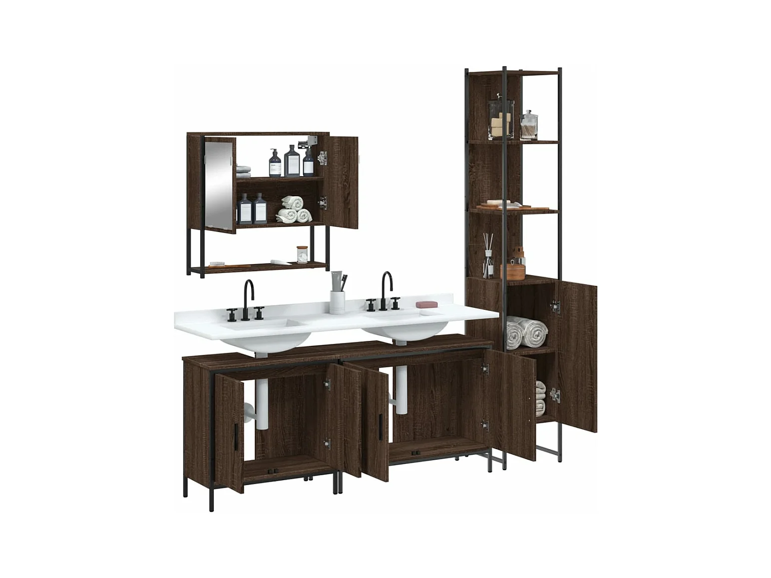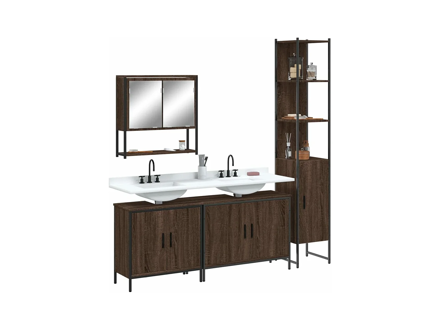 Set de muebles baño 4 pzas madera contrachapada roble marrón