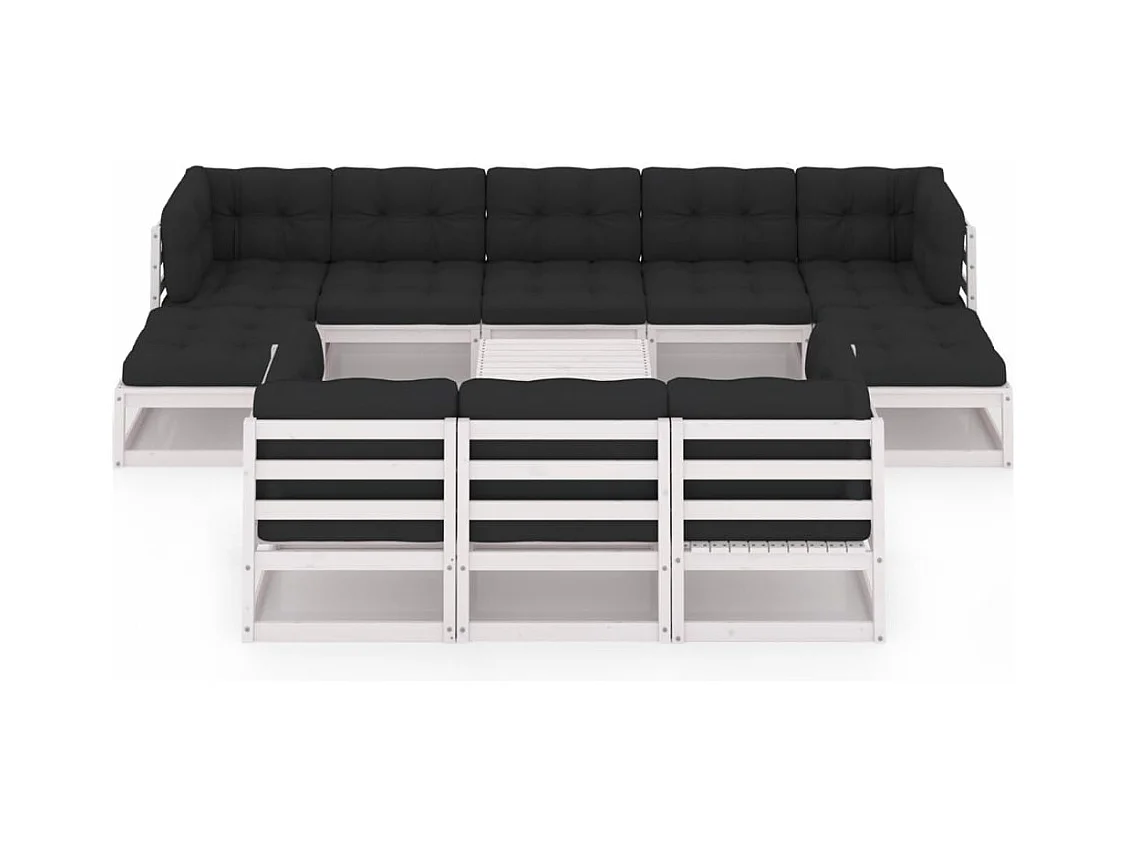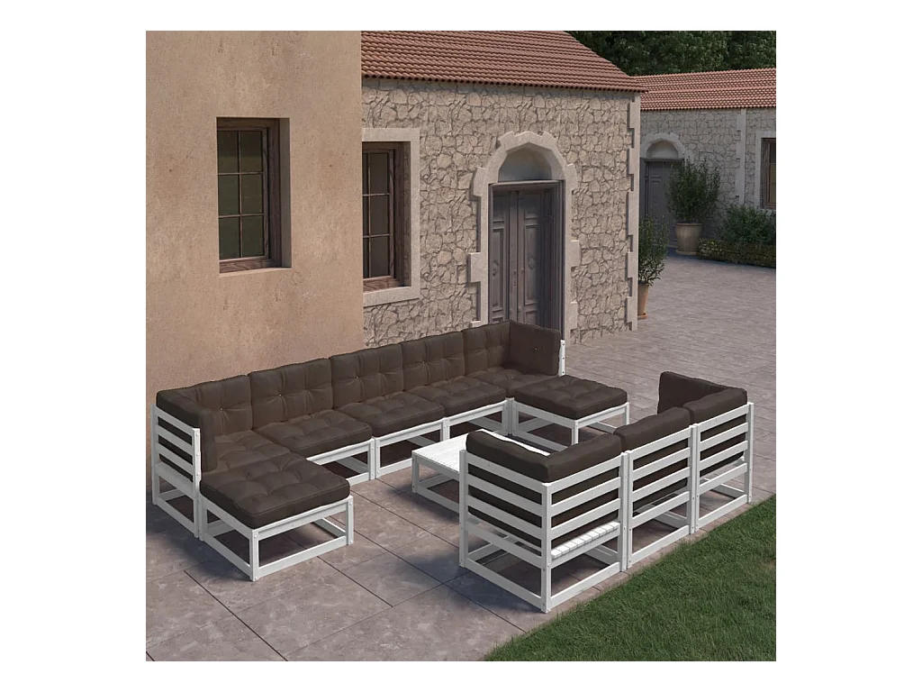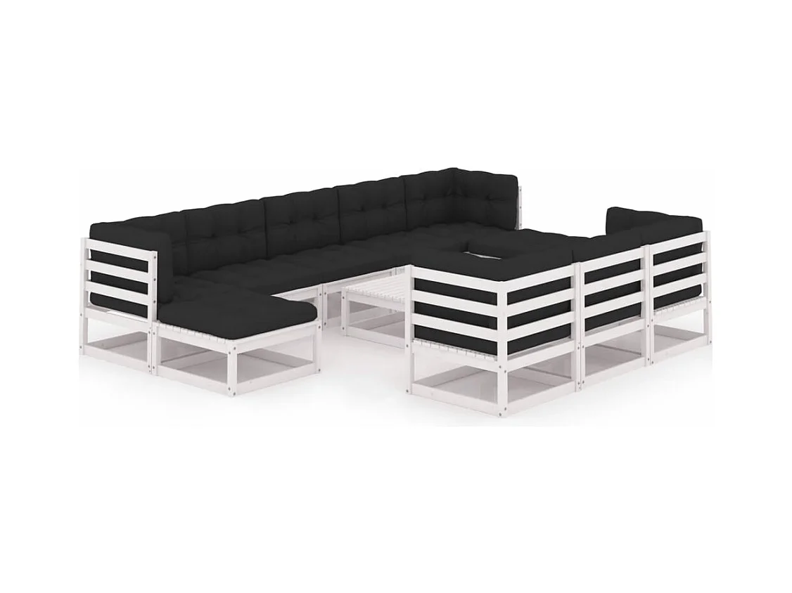 Set de muebles de jardín 11 piezas con cojines madera pino blanco