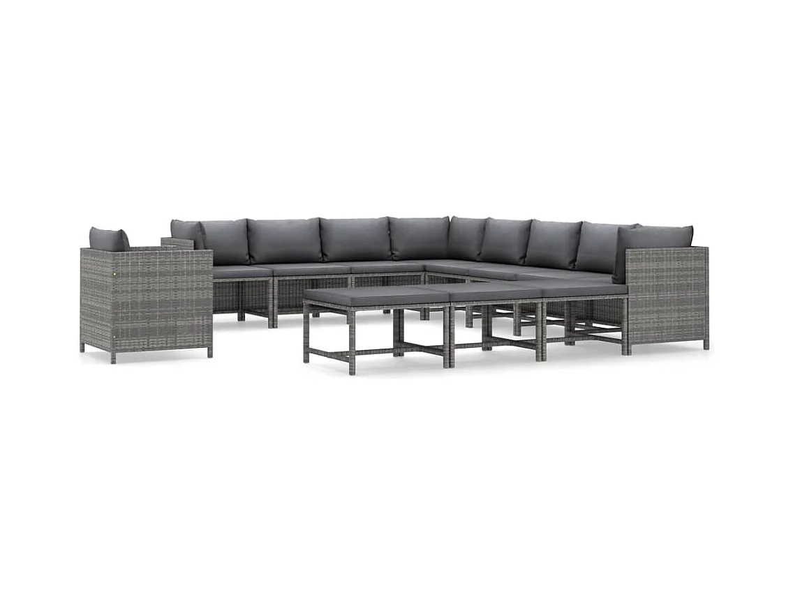 Set de muebles de jardín 12 pzas y cojines ratán sintético gris