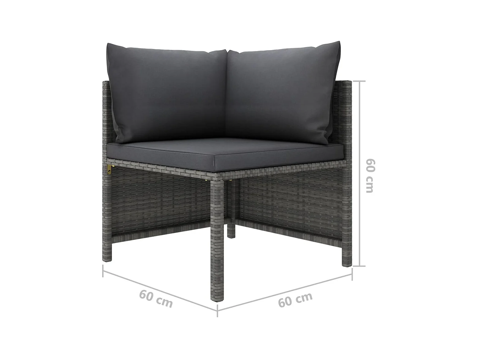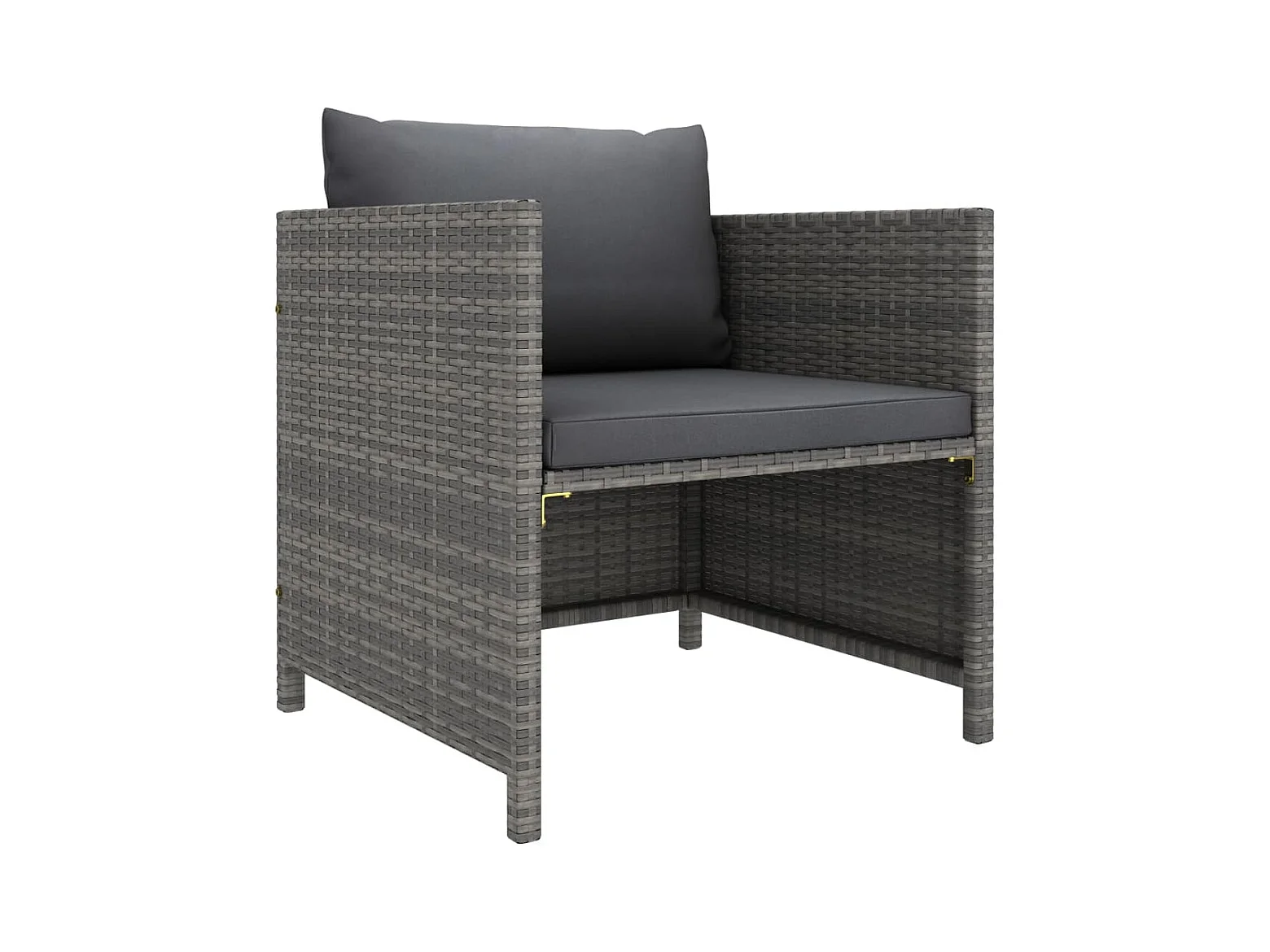 Set de muebles de jardín 3 pzas y cojines ratán sintético gris