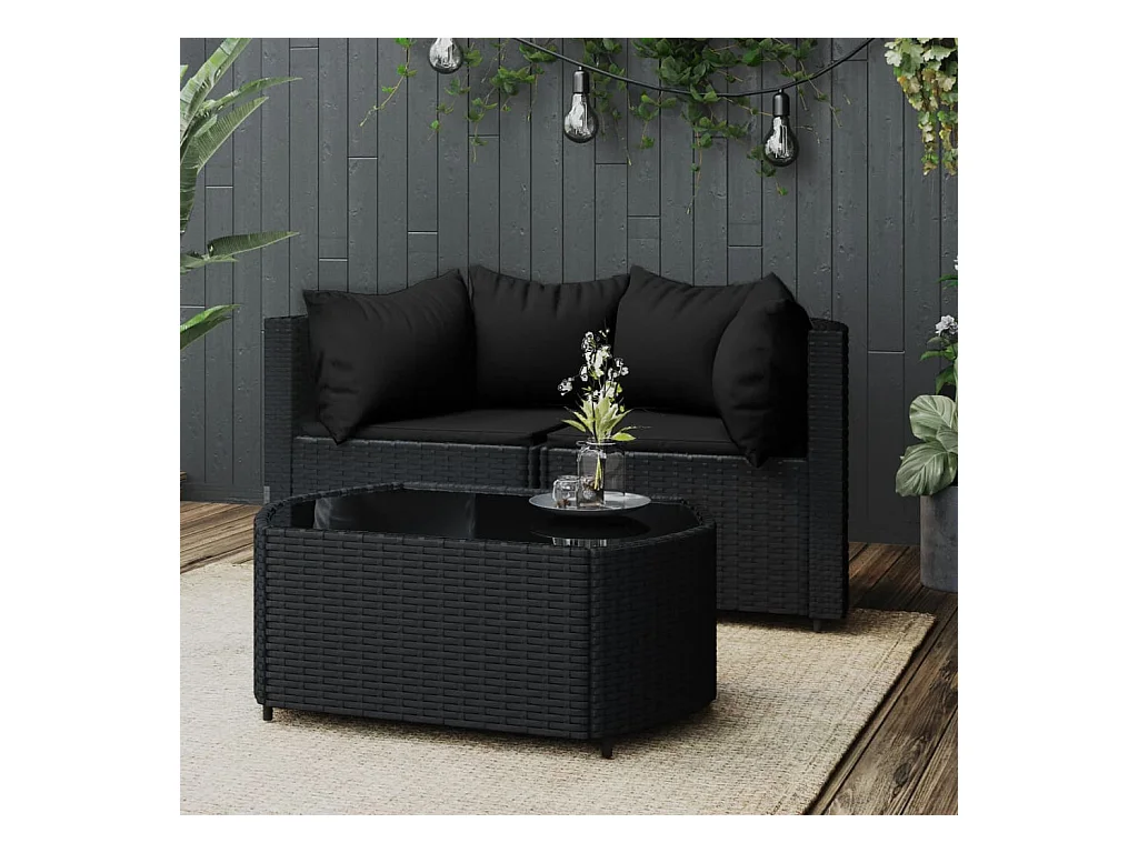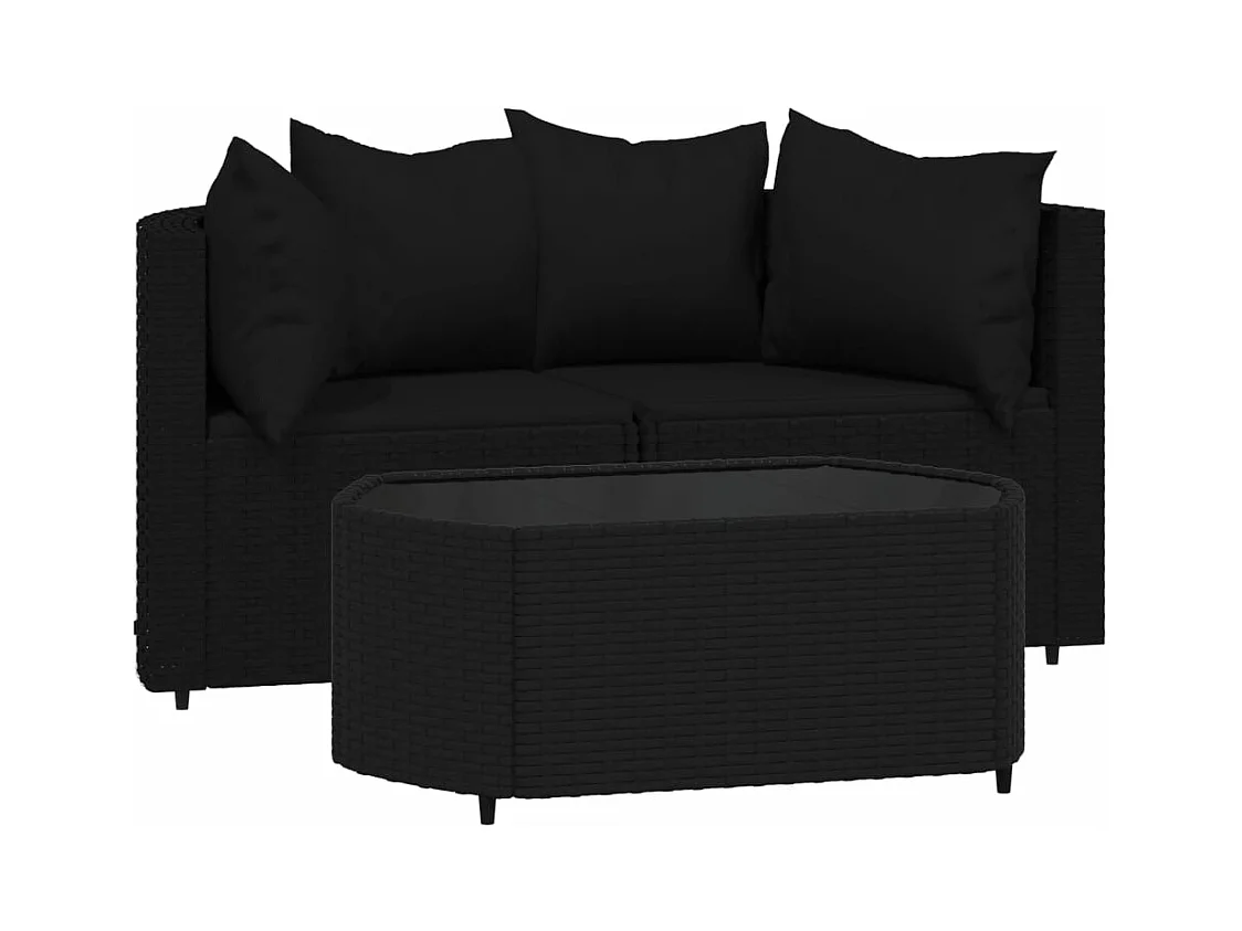 Set de muebles de jardín 3 pzas y cojines ratán sintético negro KOW24246