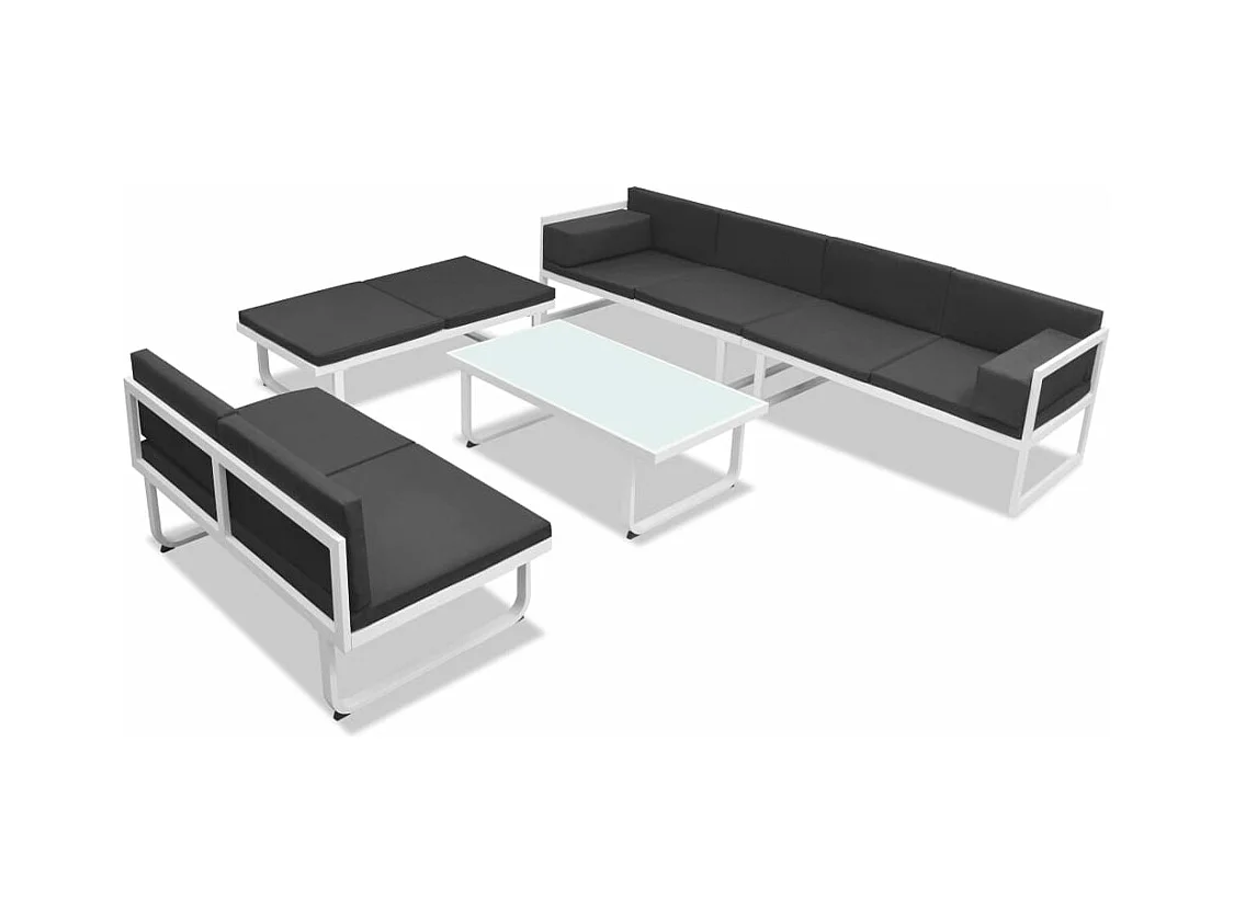 Muebles de jardín muebles de exterior juego de muebles de 4 piezas con cojines de aluminio gris oscuro 02_0016078