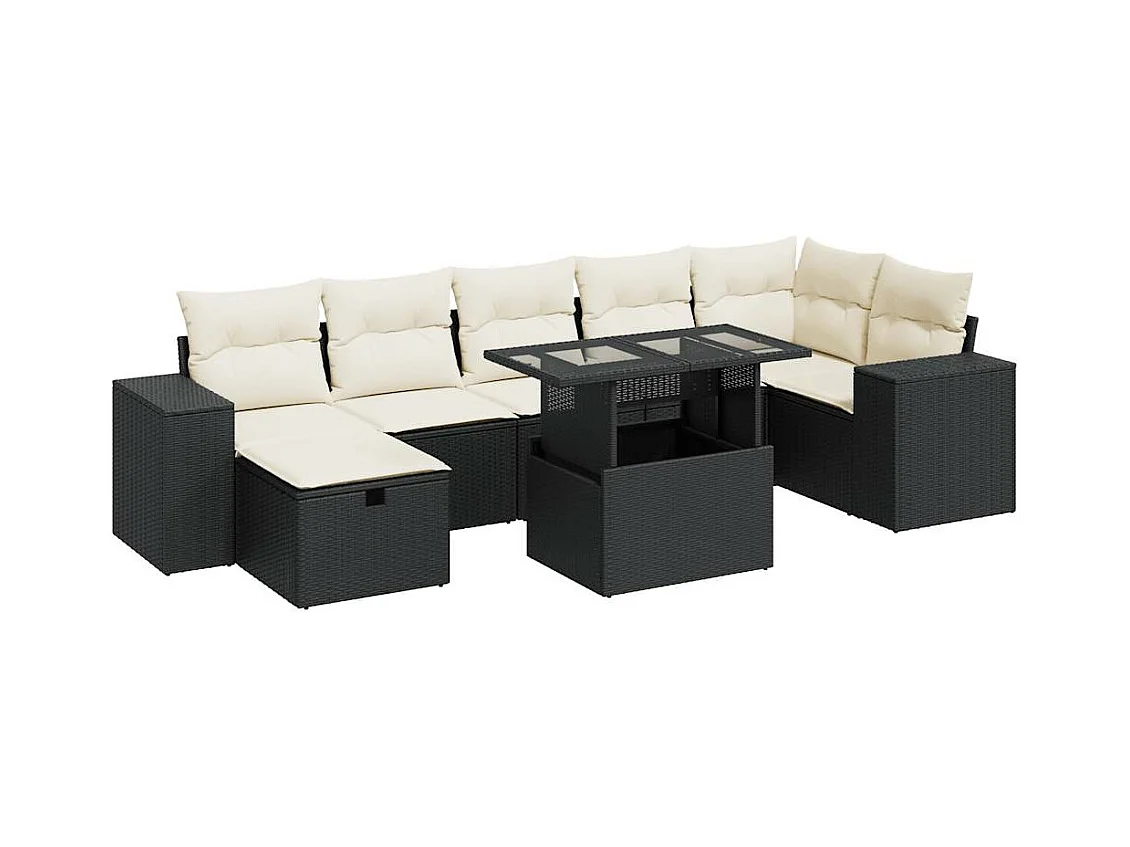 Set sofás jardín y cojines 5 piezas ratán sintético acacia negro
