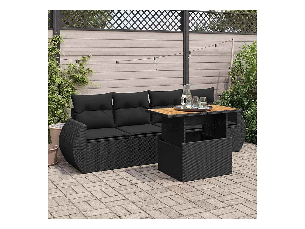 Set sofás jardín y cojines 5 piezas ratán sintético acacia negro
