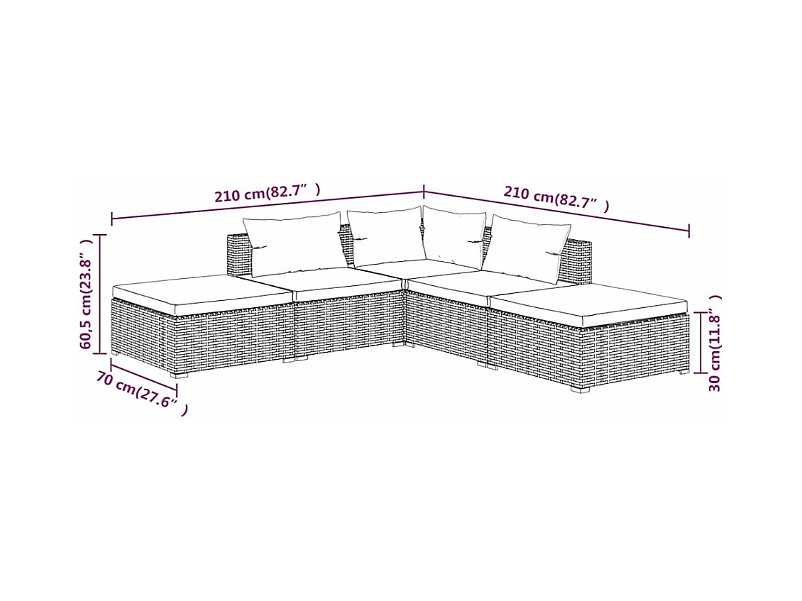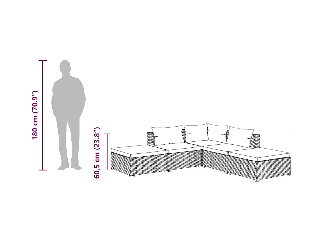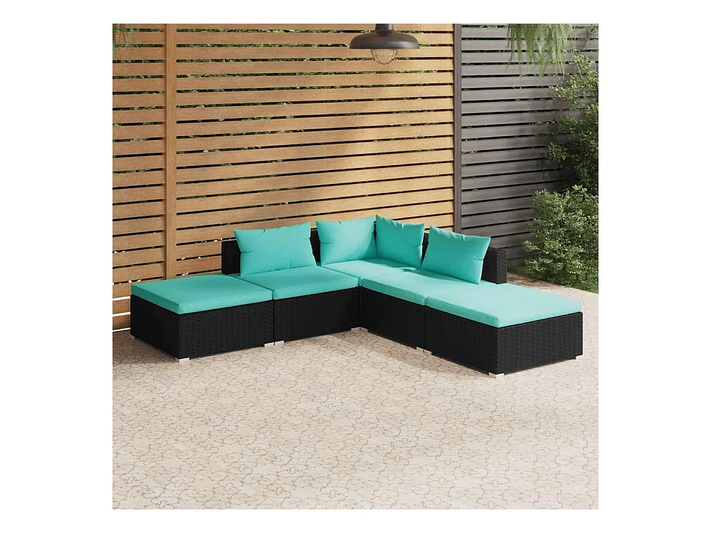 Set de muebles de jardín 5 pzas y cojines ratán sintético negro