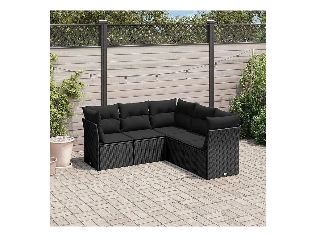 Set de muebles de jardín 5 pzas y cojines ratán sintético negro