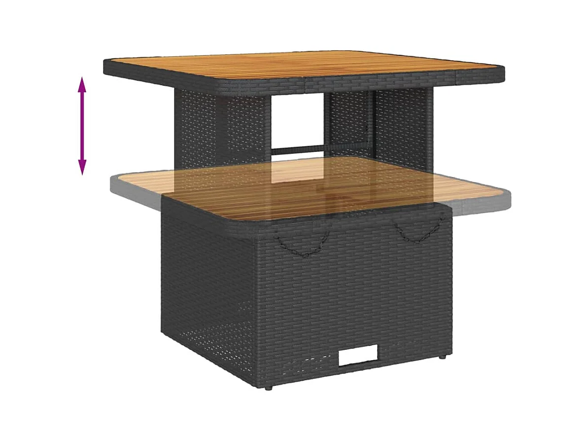 Mesa de jardín ratán sintético madera acacia negro 109x107x74cm