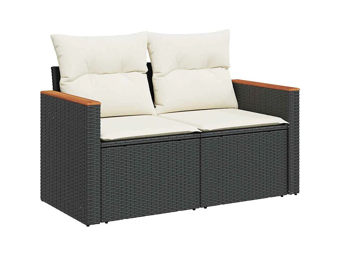 Set sofás jardín y cojines 6 pzas ratán sintético acacia negro