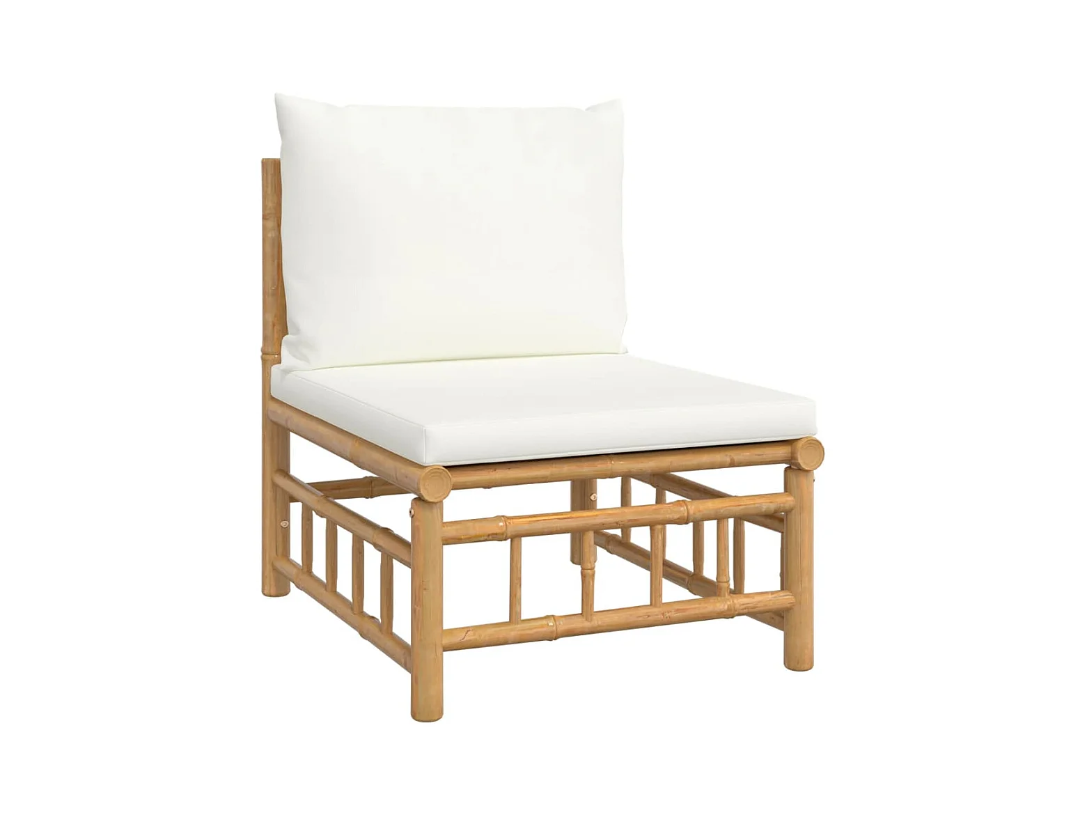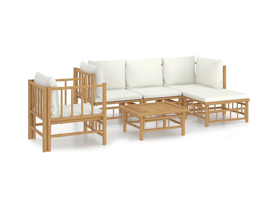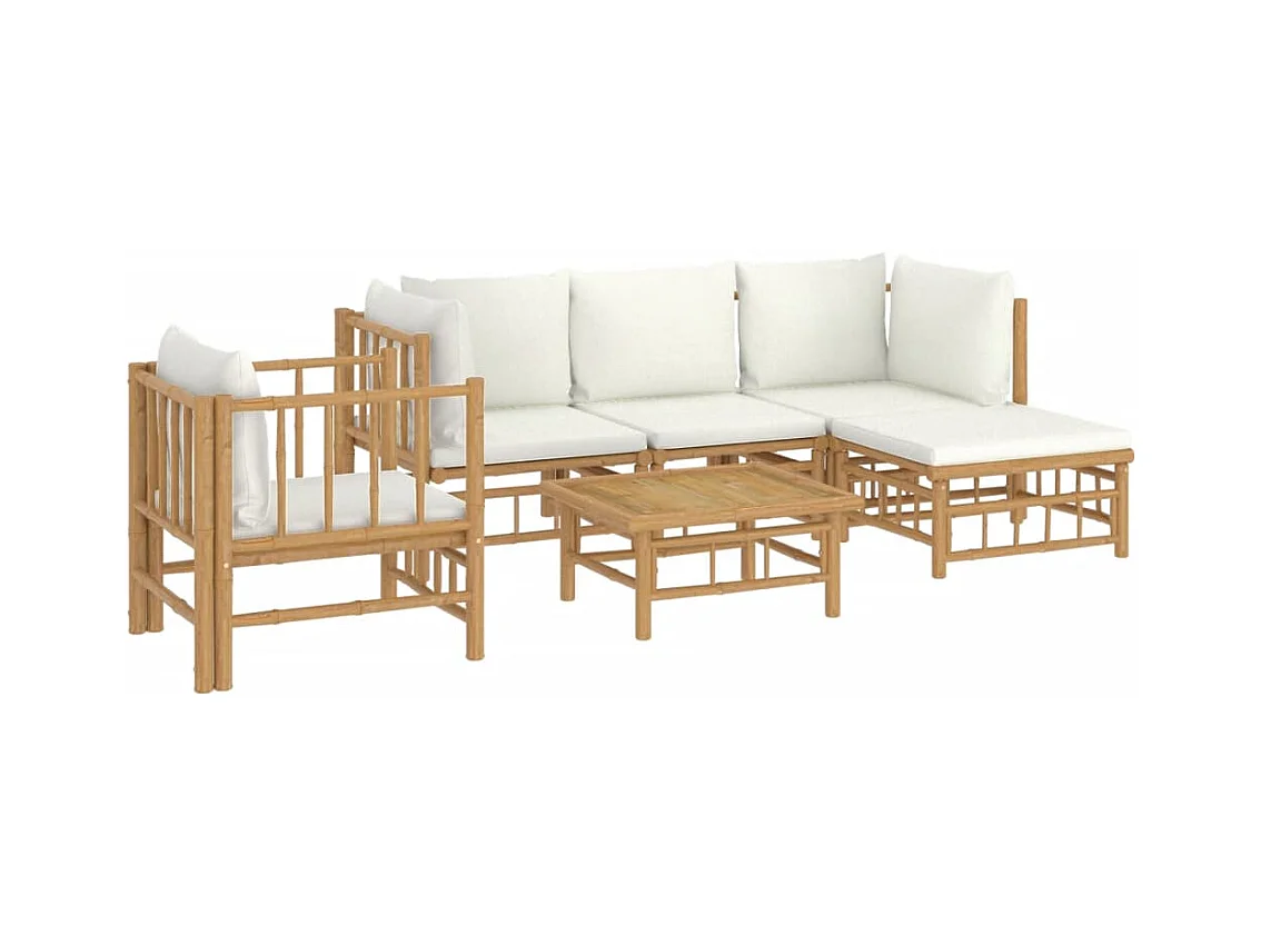 Set de muebles de jardín 6 piezas bambú y cojines blanco crema