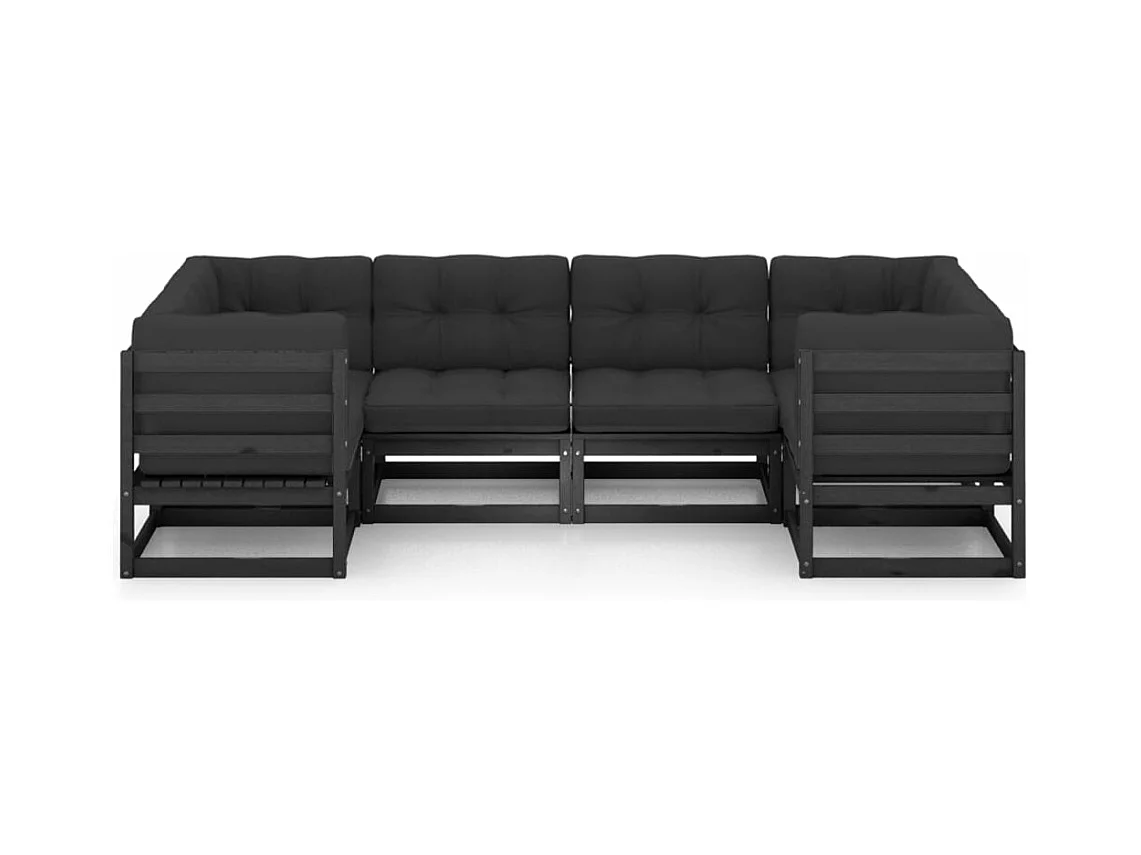 Set de muebles de jardín 6 piezas con cojines madera pino negro