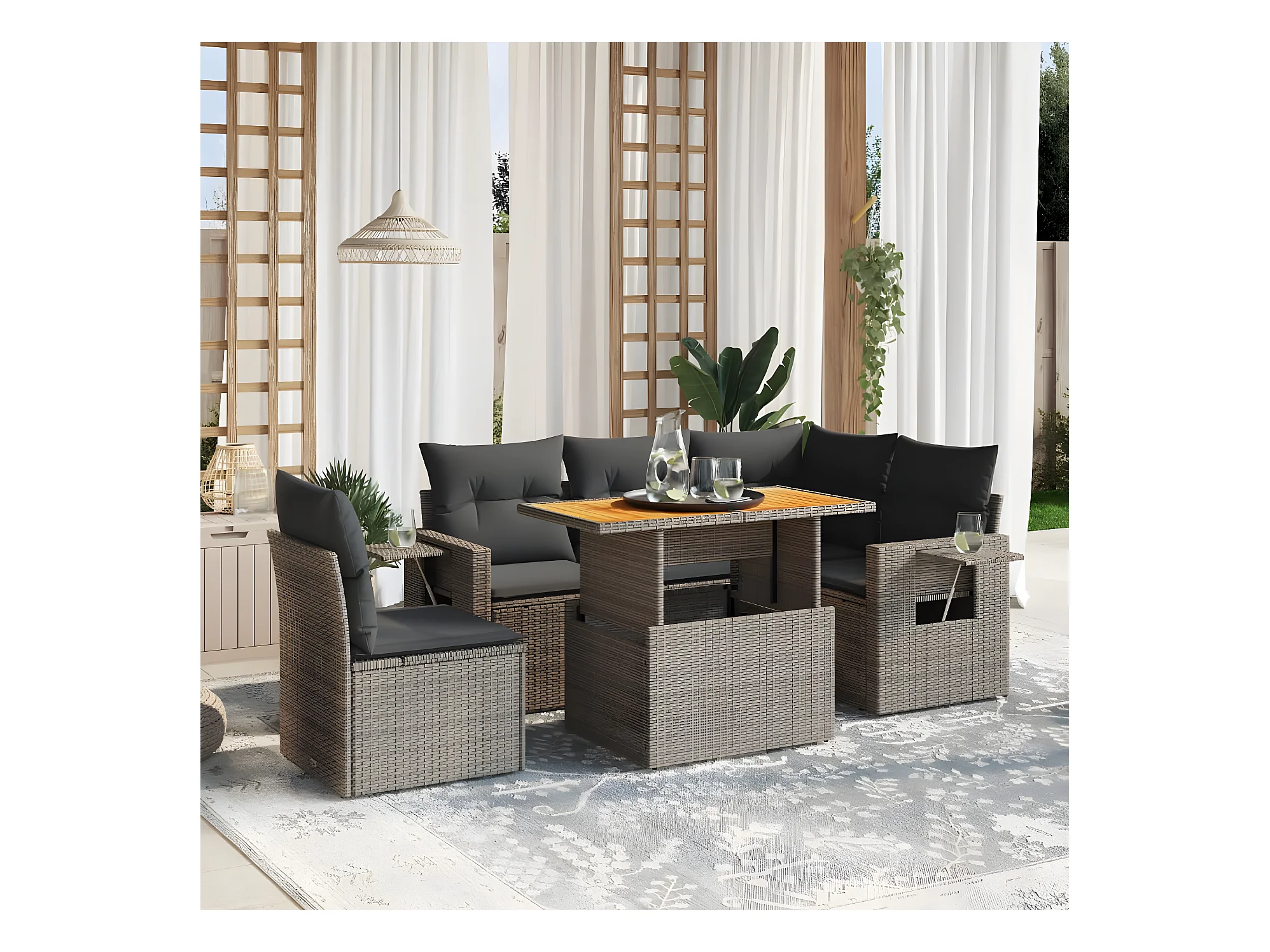 5 pzas Salón de jardín con cojines ratán sintético gris ES51437